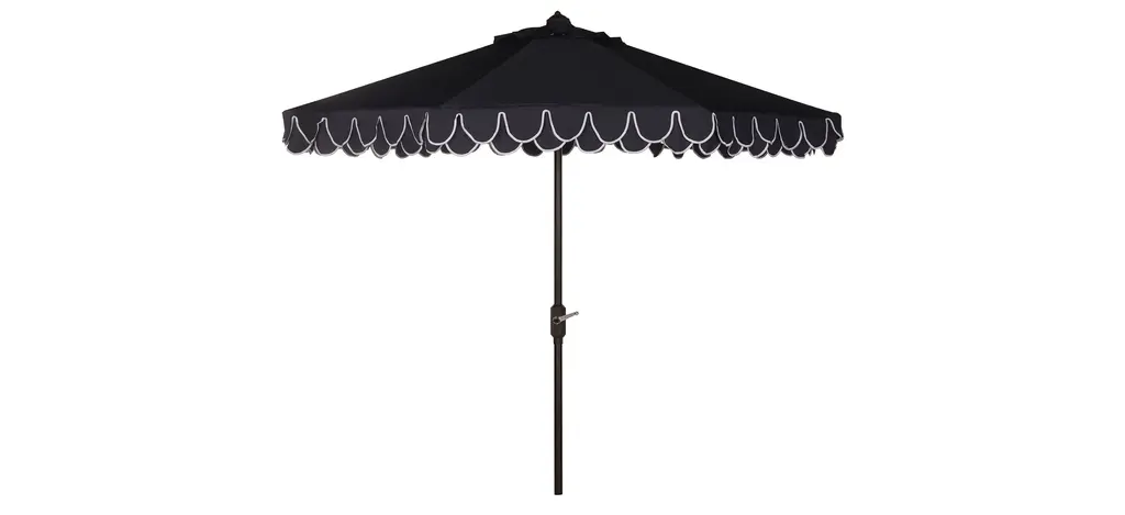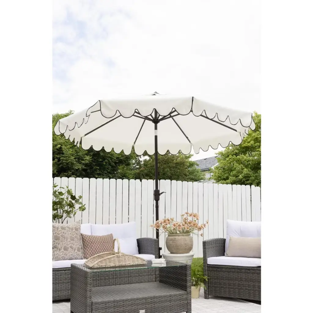 Venice Single Scallop 9Ft Crank Push Button Tilt Umbrella - Pat8010 - Ivory/black - Safavieh