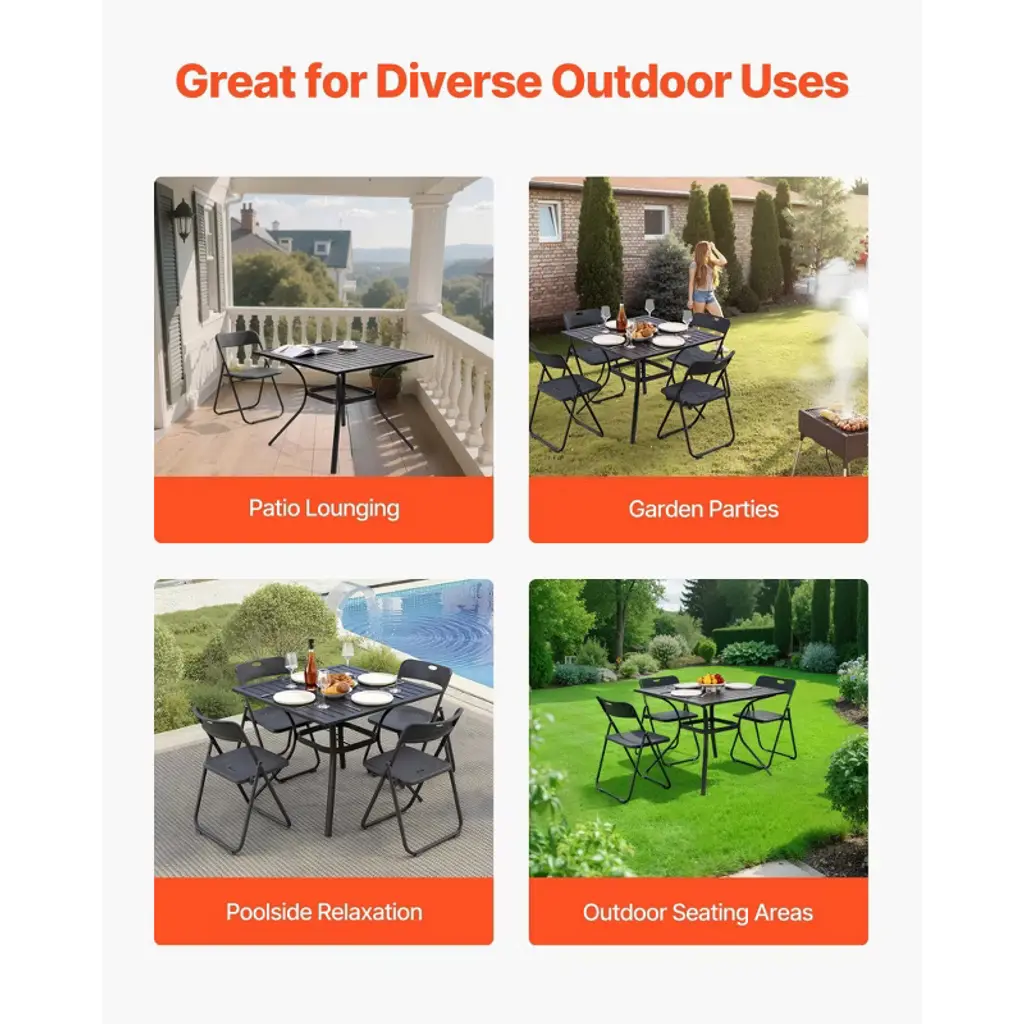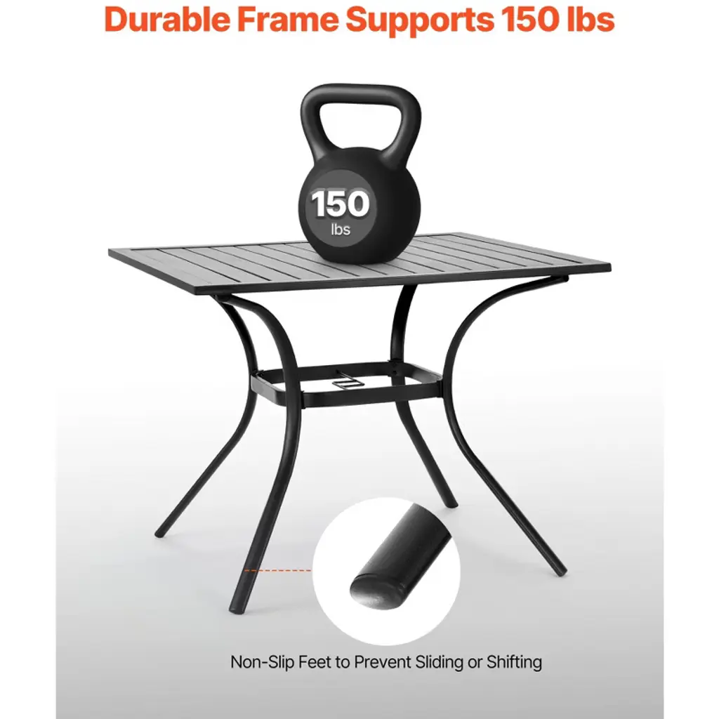 Vevor Outdoor Patio Dining Table, 37 Inch Square Metal Steel Slat Backyard Bistro Tables, With 1.5 In Umbrella Hole, Black