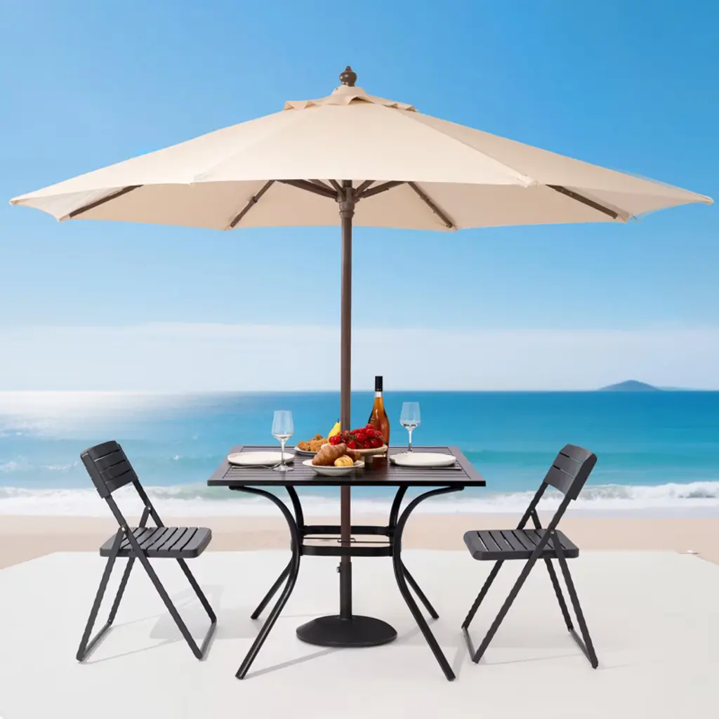 Feature: Ample Space: This patio dining table features a 37x37 in (940x940 mm) tabletop, large enough for family meals or small gatherings. The table comes with easy-to-follow assembly instructions and all necessary hardware, making setup a breeze Rust and Weather Resistant: Crafted with galvanized carbon steel, the patio table's tabletop is built for longevity and stands up to harsh outdoor conditions. Simply wipe away grease or spills with a damp cloth—no special maintenance required Sturdy and Durable: With 150 lbs/68kg weight capacity, this backyard bistro table features heavy-duty legs that remain stable even in strong winds or heavy rain. Equipped with non-slip feet, so you don't have to worry about tipping Umbrella Hole Design: This patio table for outside includes a 1.5in/38mm umbrella hole. If you prefer not to use the umbrella ring, you can fit a patio umbrella with a handle diameter up to 1.89in/48mm, providing comfort in both sun and rain Wide Applications: Our outdoor patio dining table is ideal for patio, garden, balcony, porch, or front and backyard. Versatile and practical, it's suitable for barbecues, gatherings, and parties—a great addition to any outdoor space Package Content 1 x Outdoor Patio Dining Table 1 x Set of Accessories