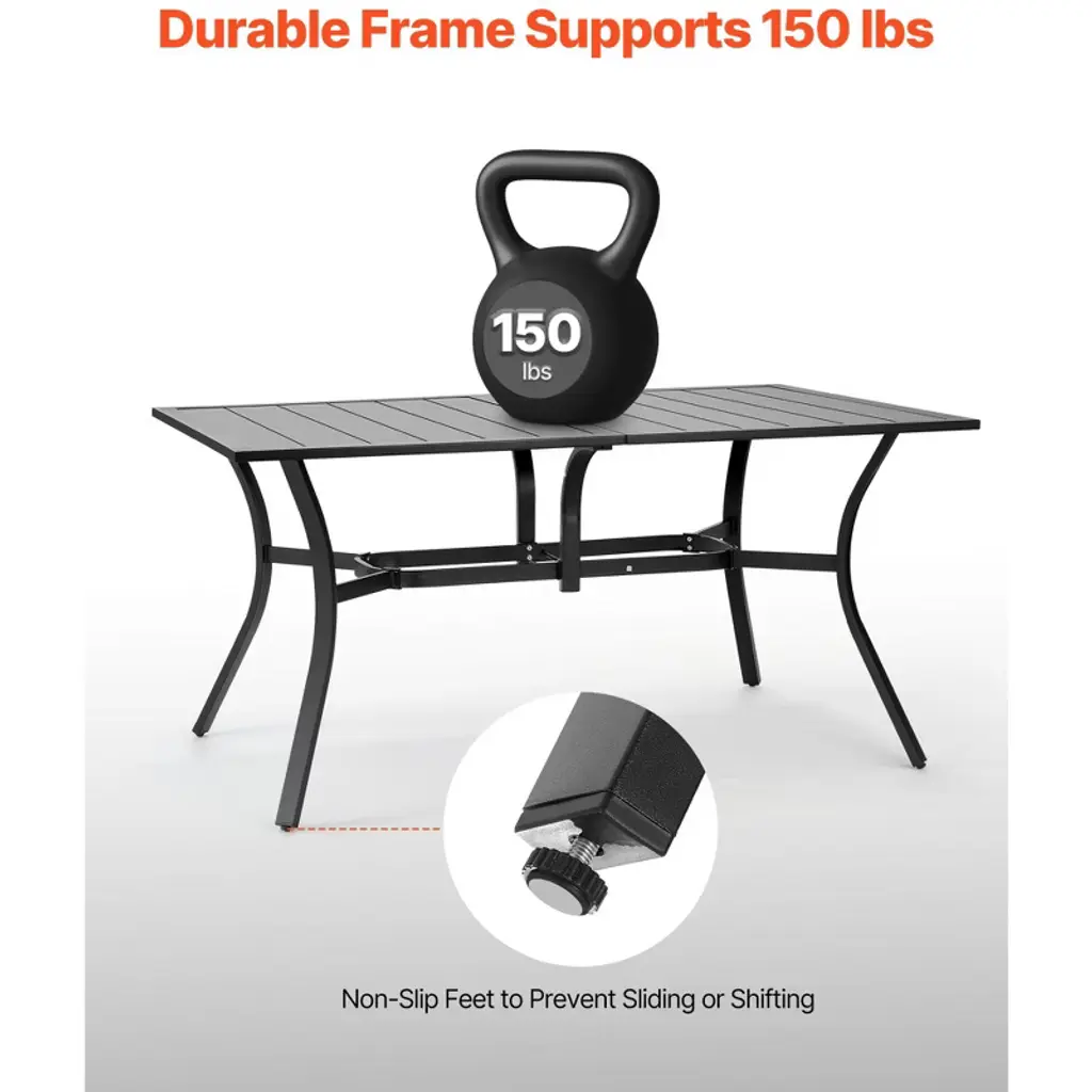 Vevor Outdoor Patio Dining Table, 59 Inch Long Rectangular Metal Steel Slat Backyard Bistro Tables For 4-6, With 1.5 In Umbrella Hole, Black