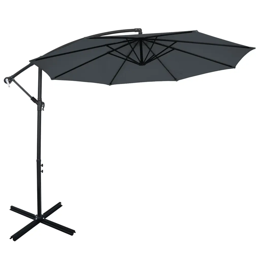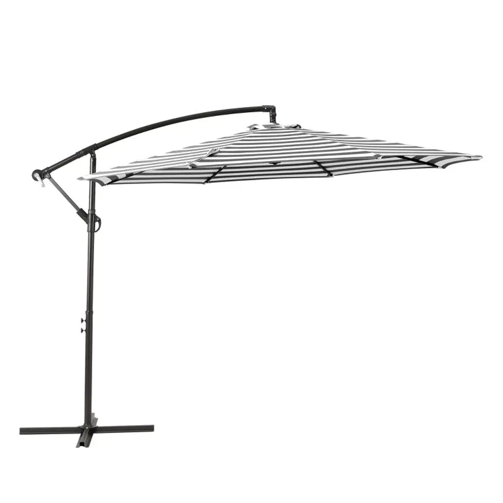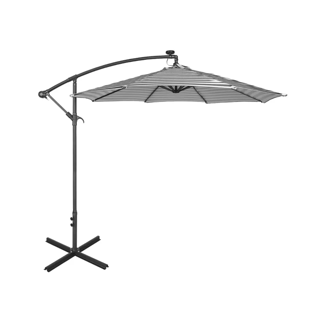 Westintrends 10 Ft Outdoor Patio Solar Led Cantilever Umbrella, Gray/white Stripe