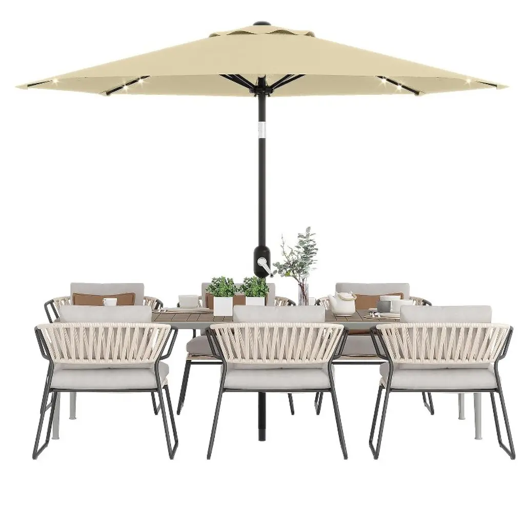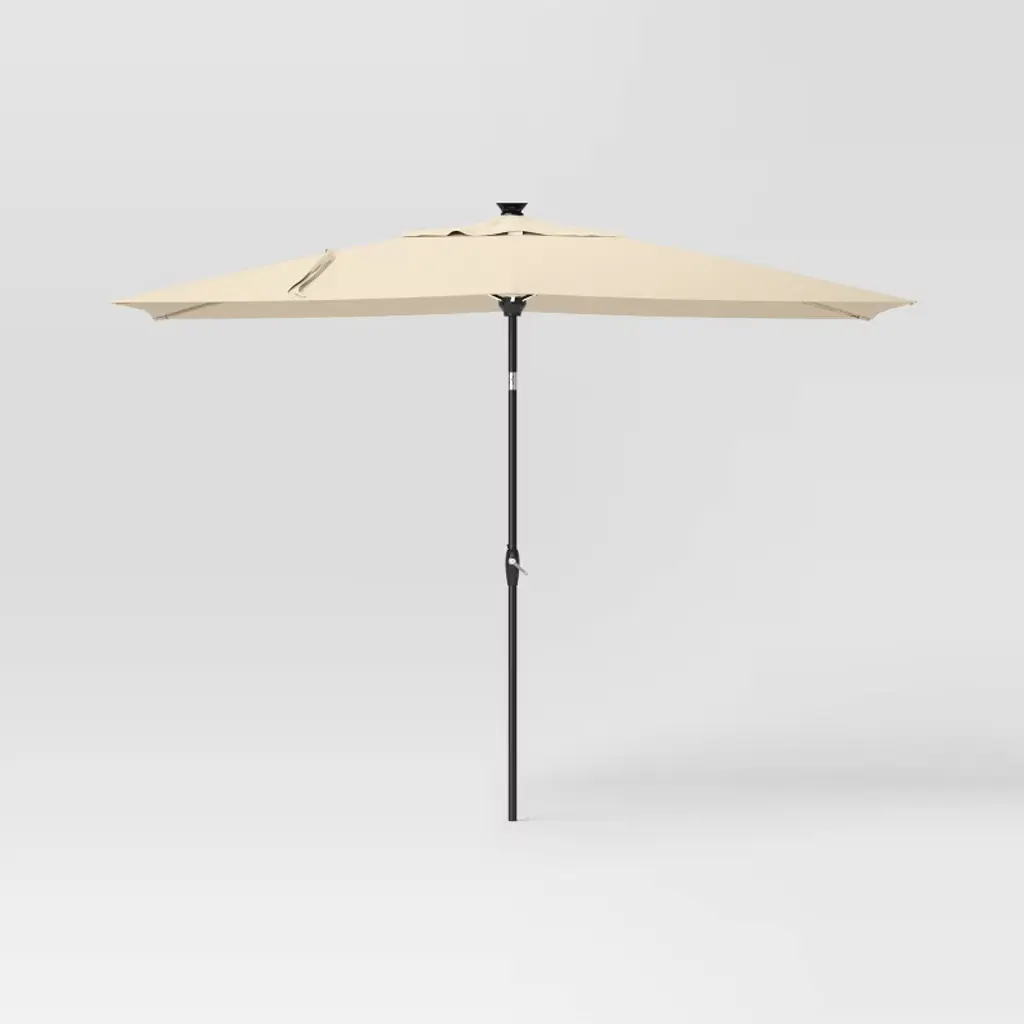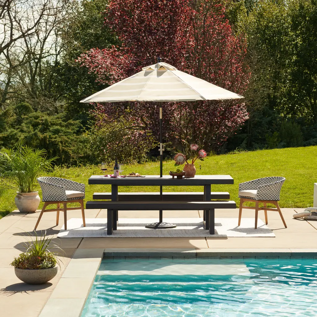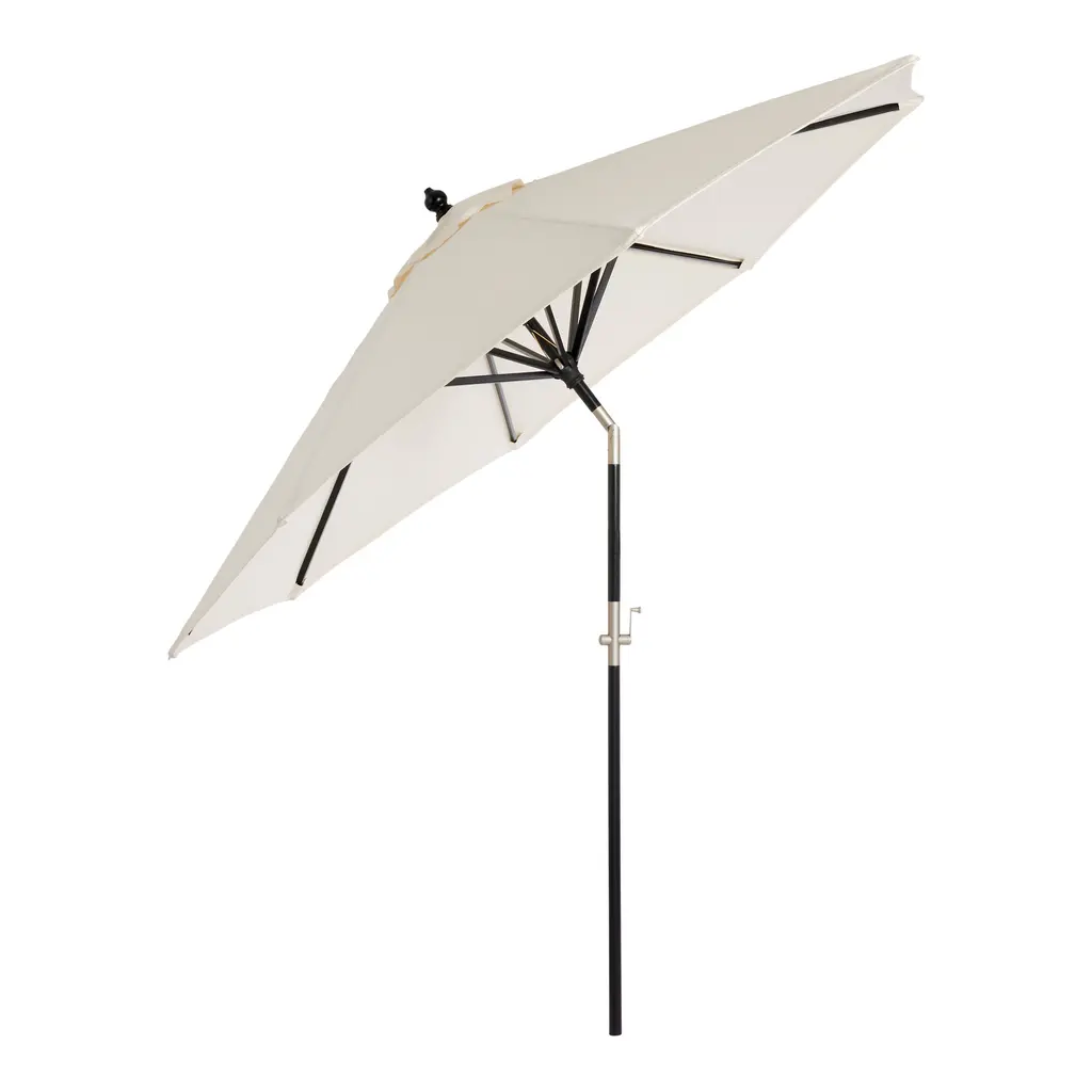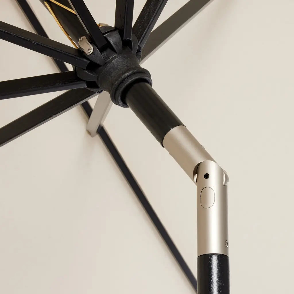 Crafted of wood with a crank lift and push-button tilt, our newly redesigned 9-foot patio umbrella frame and pole is easy to set up and operate with just one person. Available in neutral colors, it complements any of our 9-foot umbrella canopies. Set up your complete umbrella with your patio dining table or seating arrangement to entertain in the shade. This is an umbrella frame only. Umbrella canopy and stand are sold separately.
