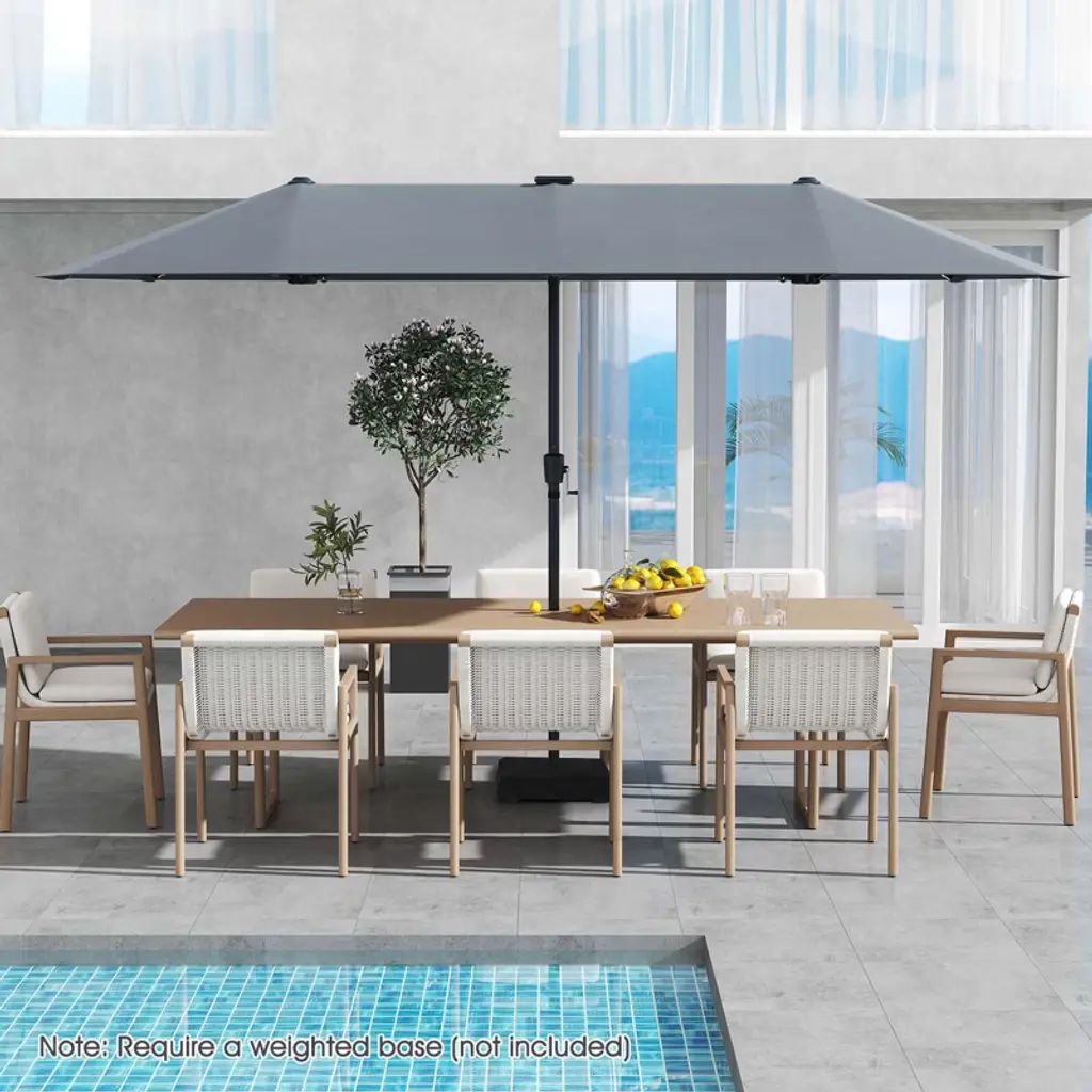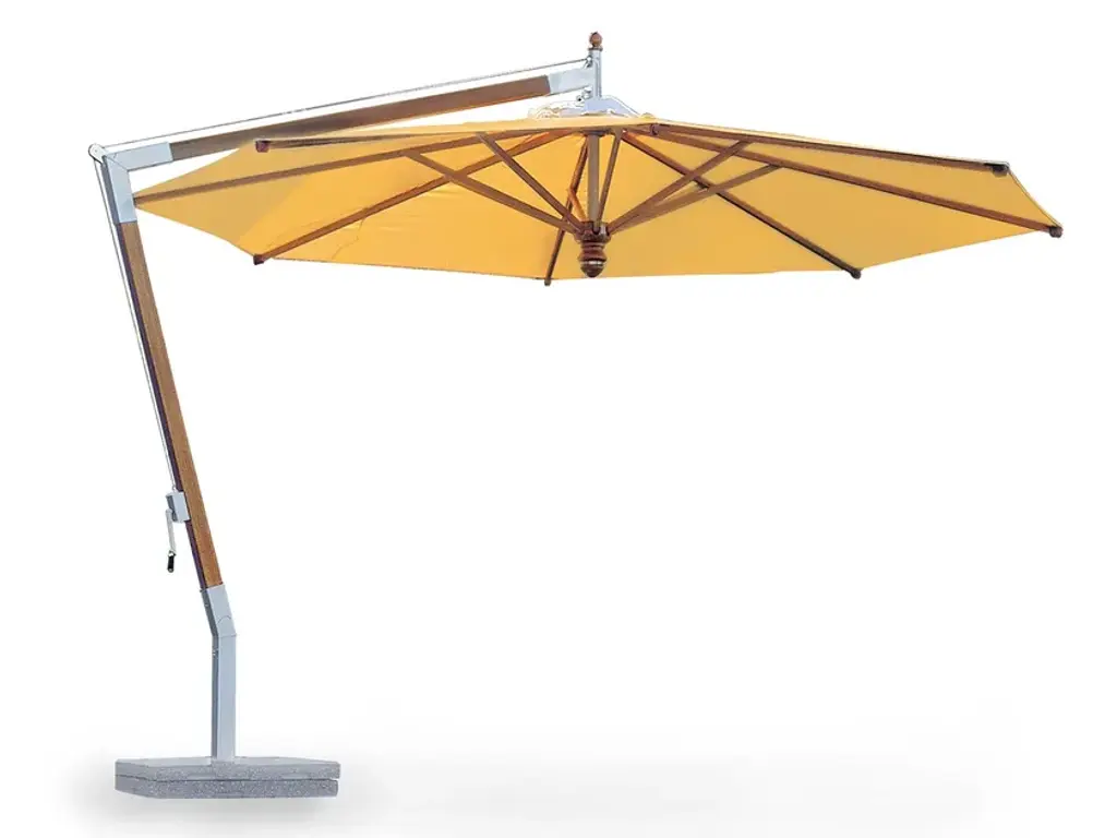 The Woodline Pendulum is a large cantilever umbrella with a traditional shape and function, opened or closed by means of a crank, it can be rotated 360 ° and is made of eucalyptus. If the umbrella is not in use, the umbrella part can be covered in the closed state or it can also be easily removed. A protective cover is included in the scope of delivery. The umbrella is made of high quality, sturdy eucalyptus wood, the umbrella covers are made of high quality, lightfast acrylic fabric with UPF 50 +. The leather pockets on the cover for attachment to the struts ensure the homely character. An important feature of the umbrellas is the wind ventilation in the cover. This significantly increases the stability in wind, gusts can escape through the hood.