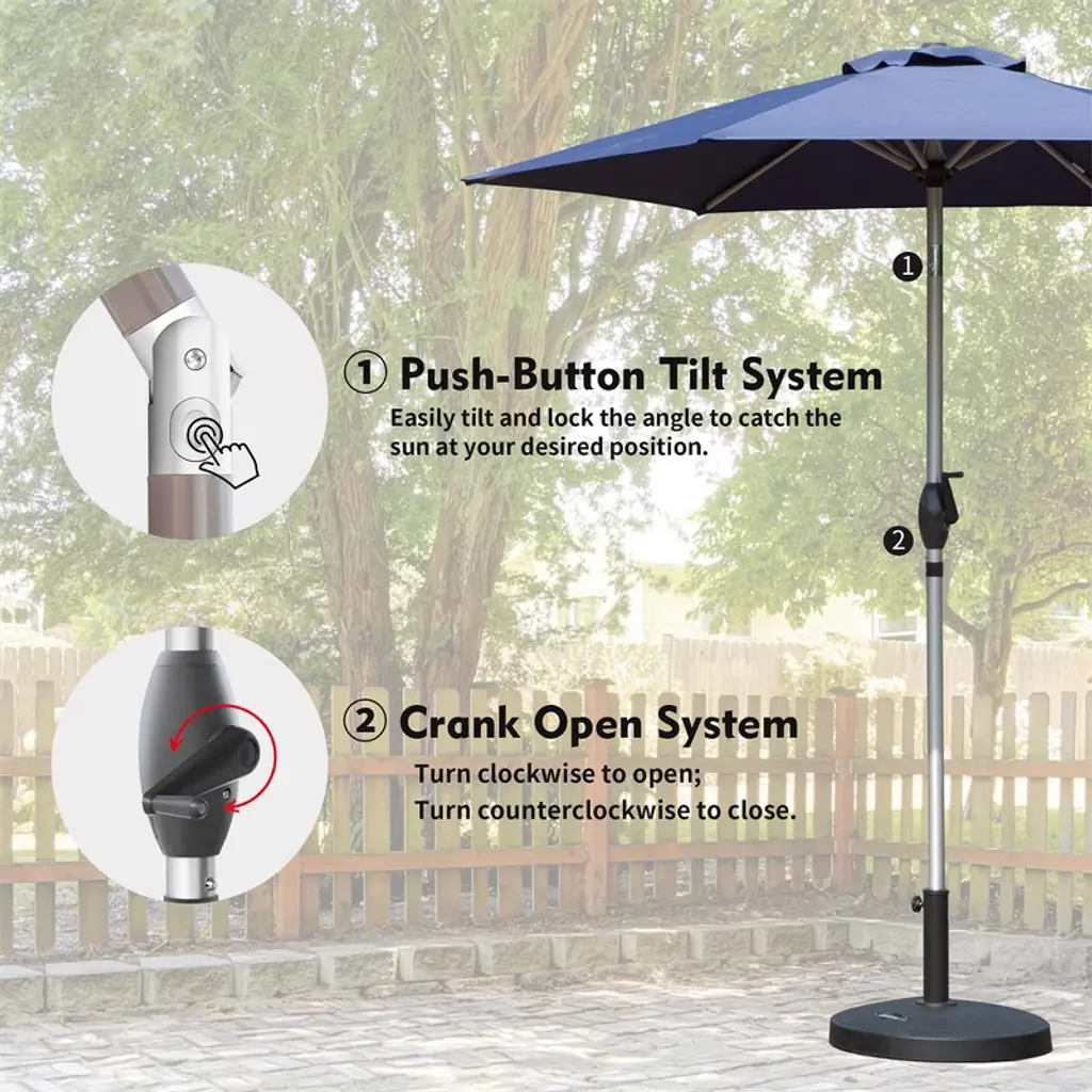 Xinghanzhenxuan Blue 7.5ft Patio Umbrella With Push Button Tilt And Crank, Umbrella With 6 Sturdy Ribs