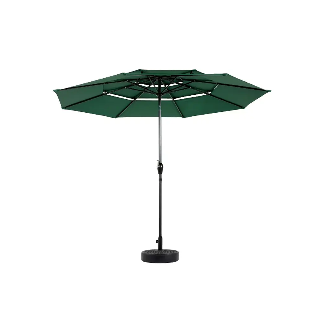Xinghanzhenxuan Dark Green 3-tier Auto-tilt Patio Umbrella, Outdoor Market Table Umbrella With Crank Handle For Deck, Pool, Garden