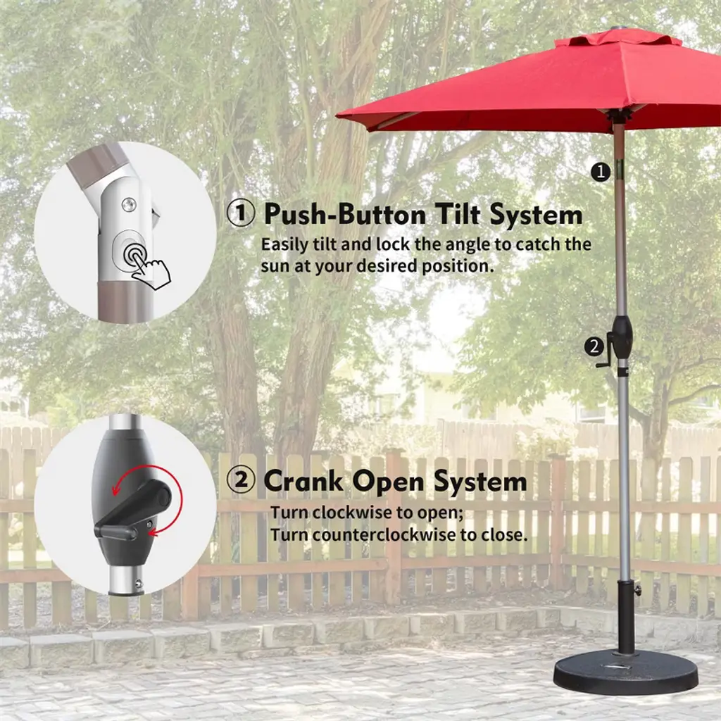 Xinghanzhenxuan Red 7.5ft Patio Umbrella With Push Button Tilt And Crank, Umbrella With 6 Sturdy Ribs