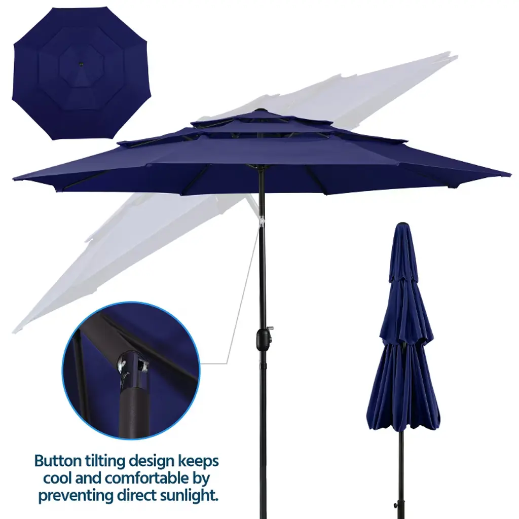 Yaheetech 10ft Patio Umbrella With 8 Sturdy Ribs For Outdoor, Navy Blue