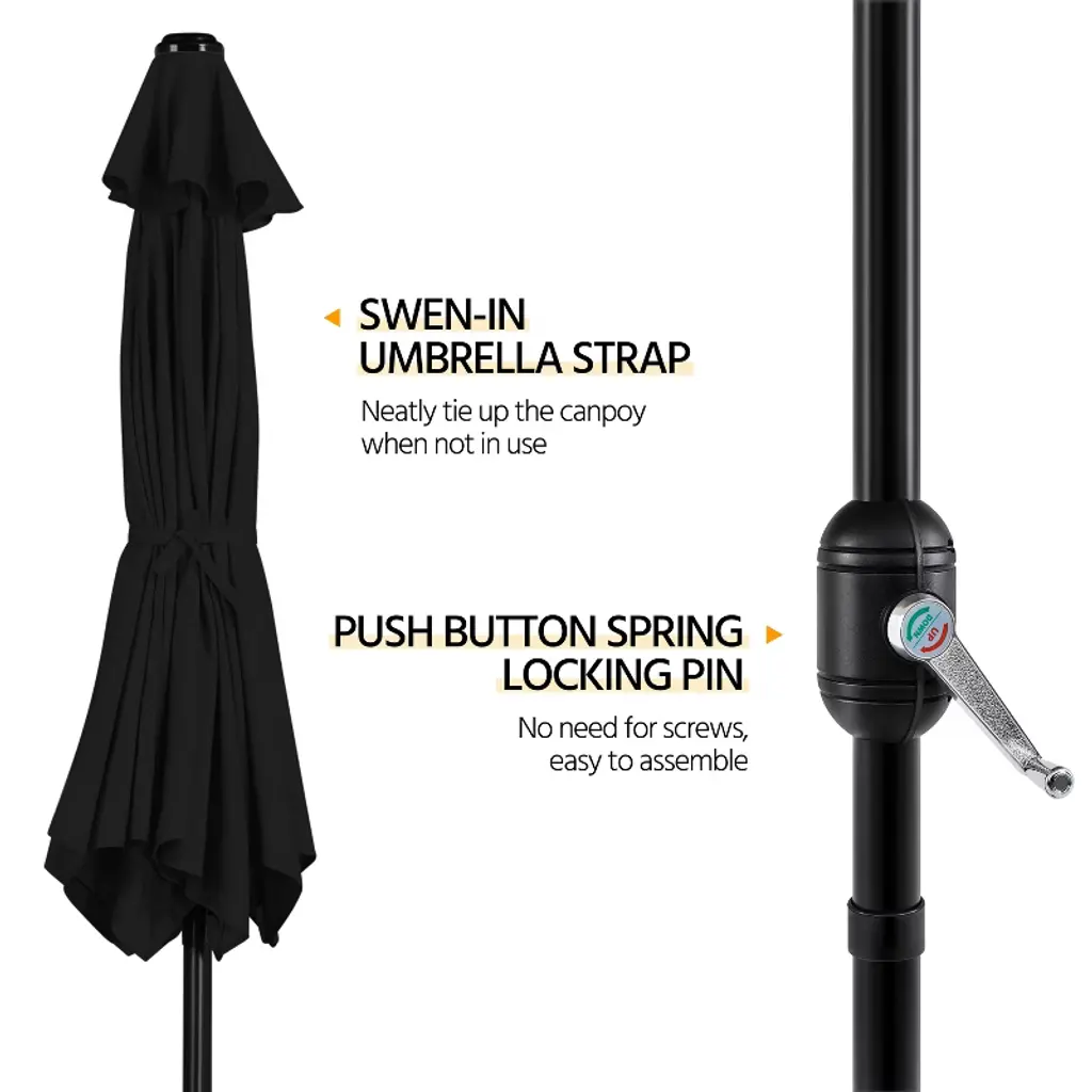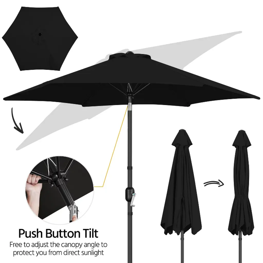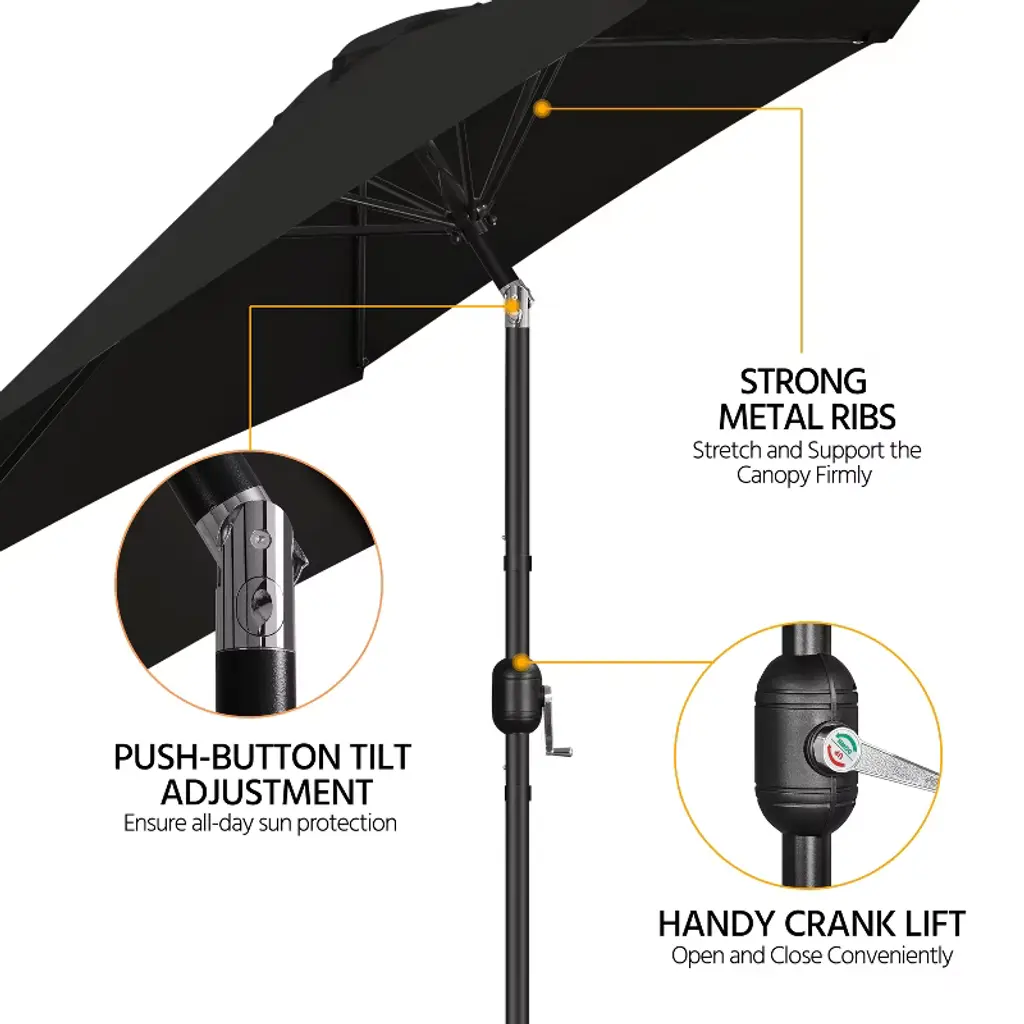 Yaheetech 9Ft Patio Umbrella Market Umbrella With Button Tilt And Crank, Black