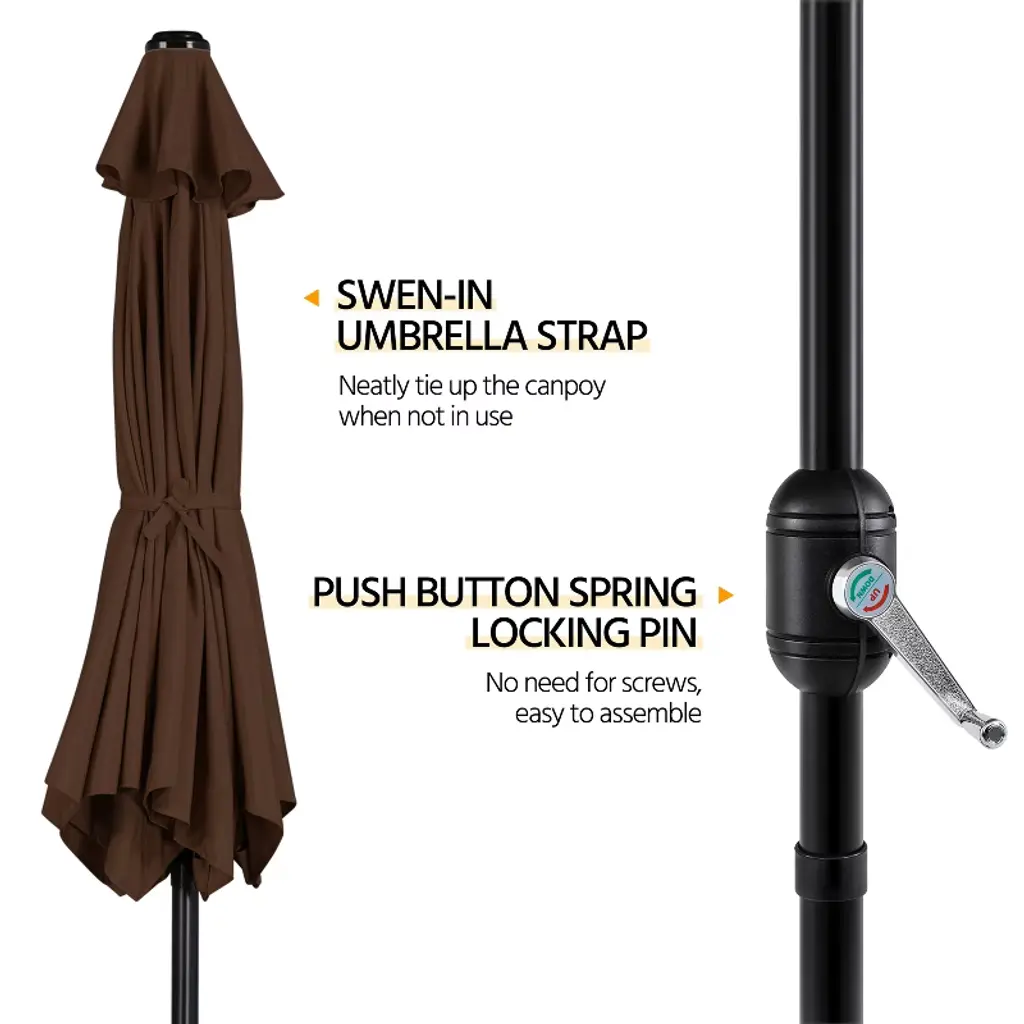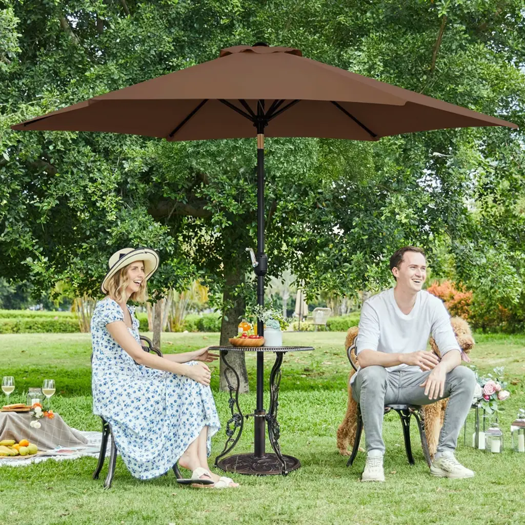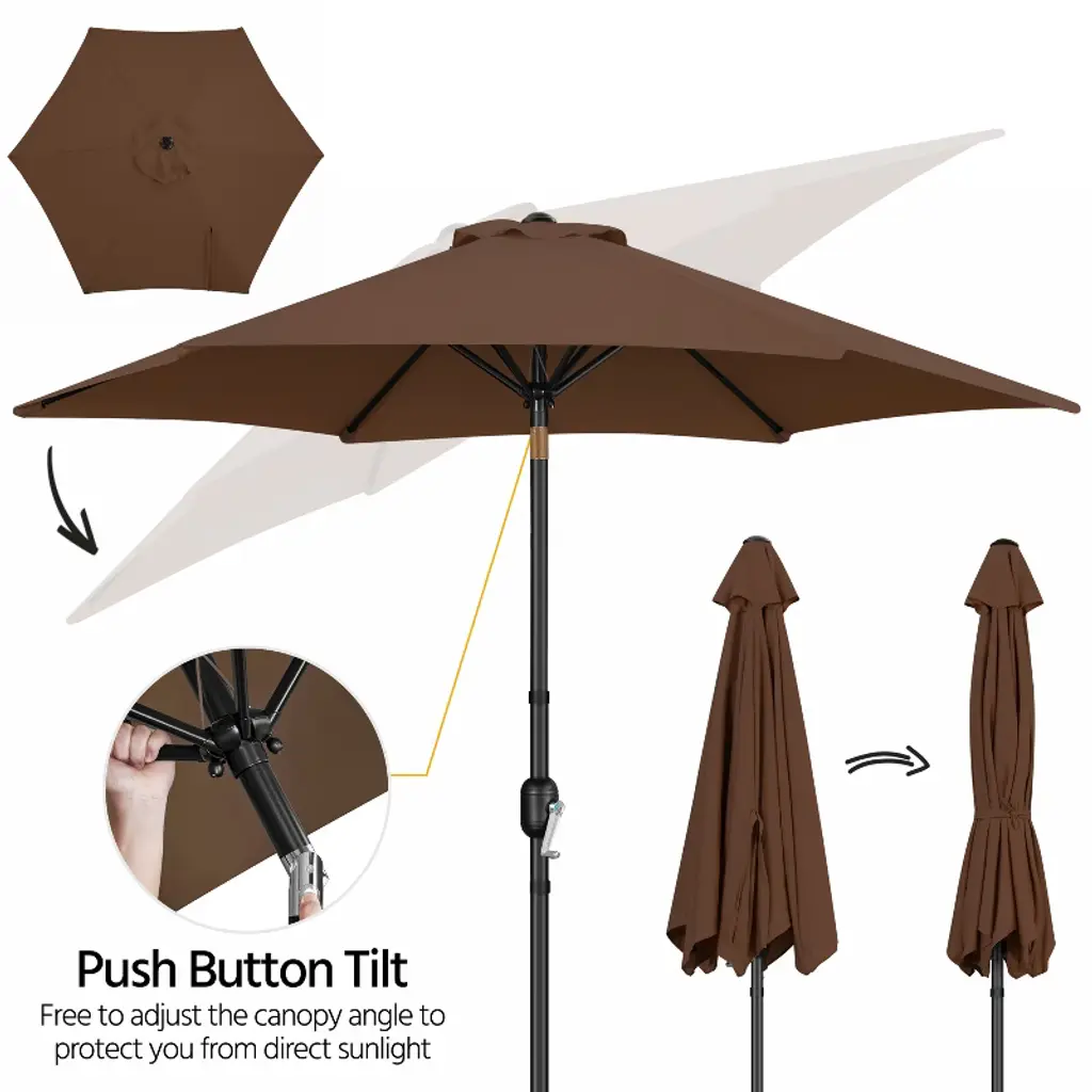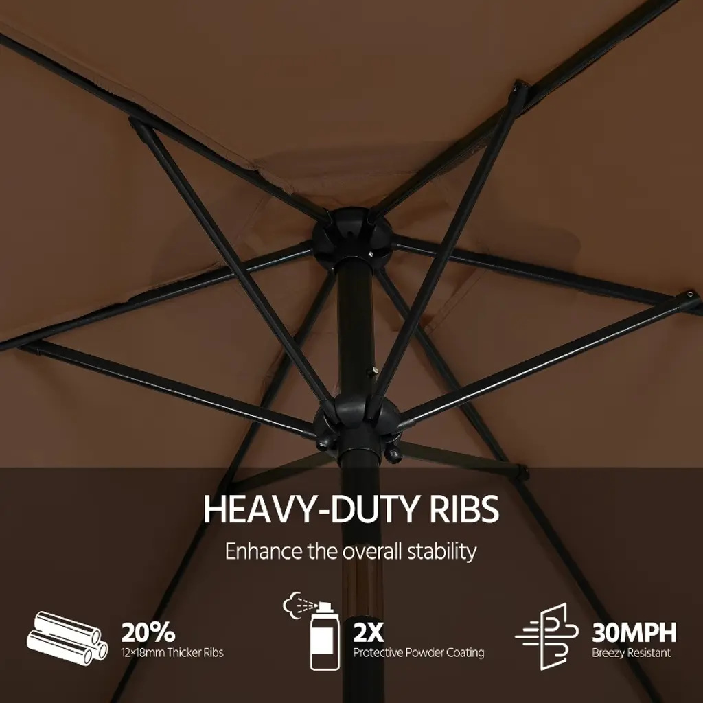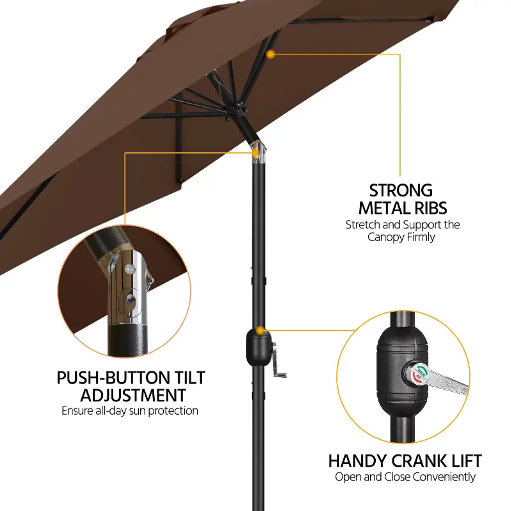 Yaheetech 9Ft Patio Umbrella Market Umbrella With Button Tilt And Crank, Brown