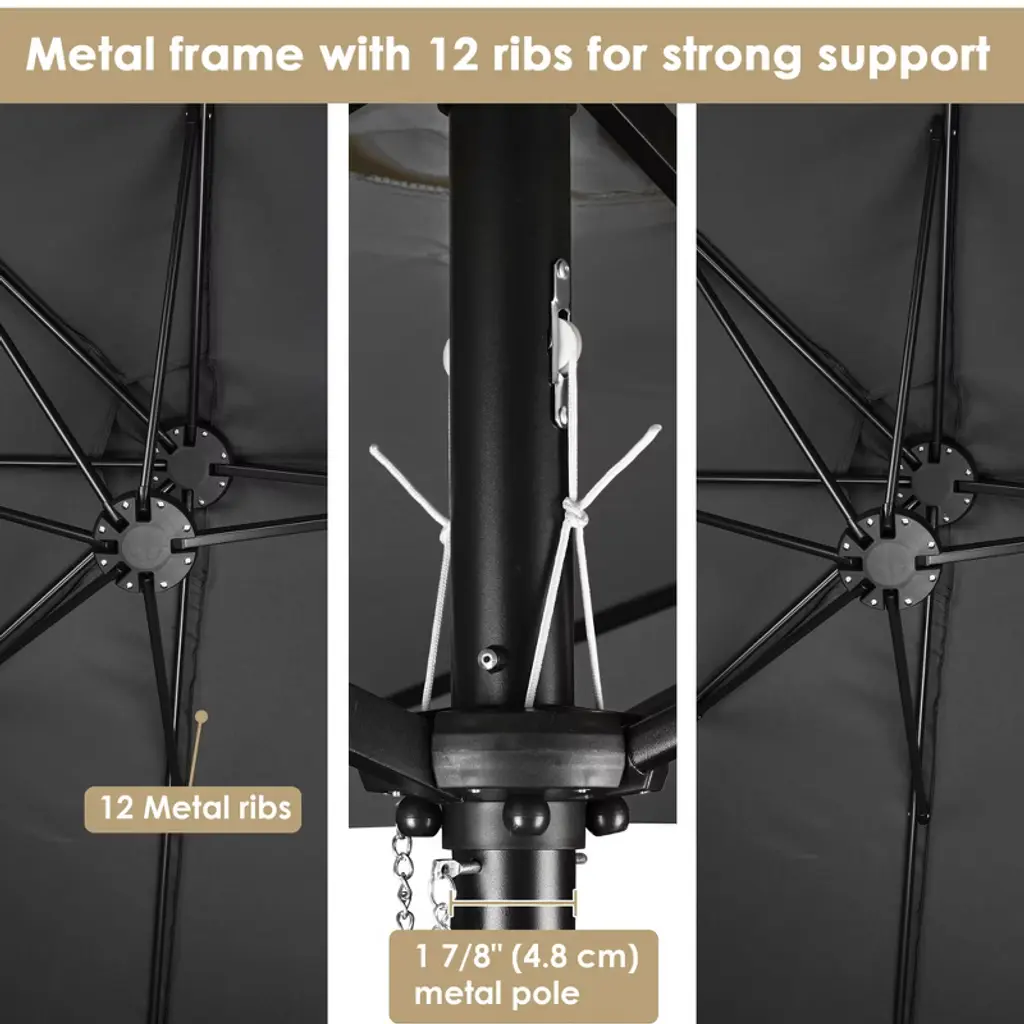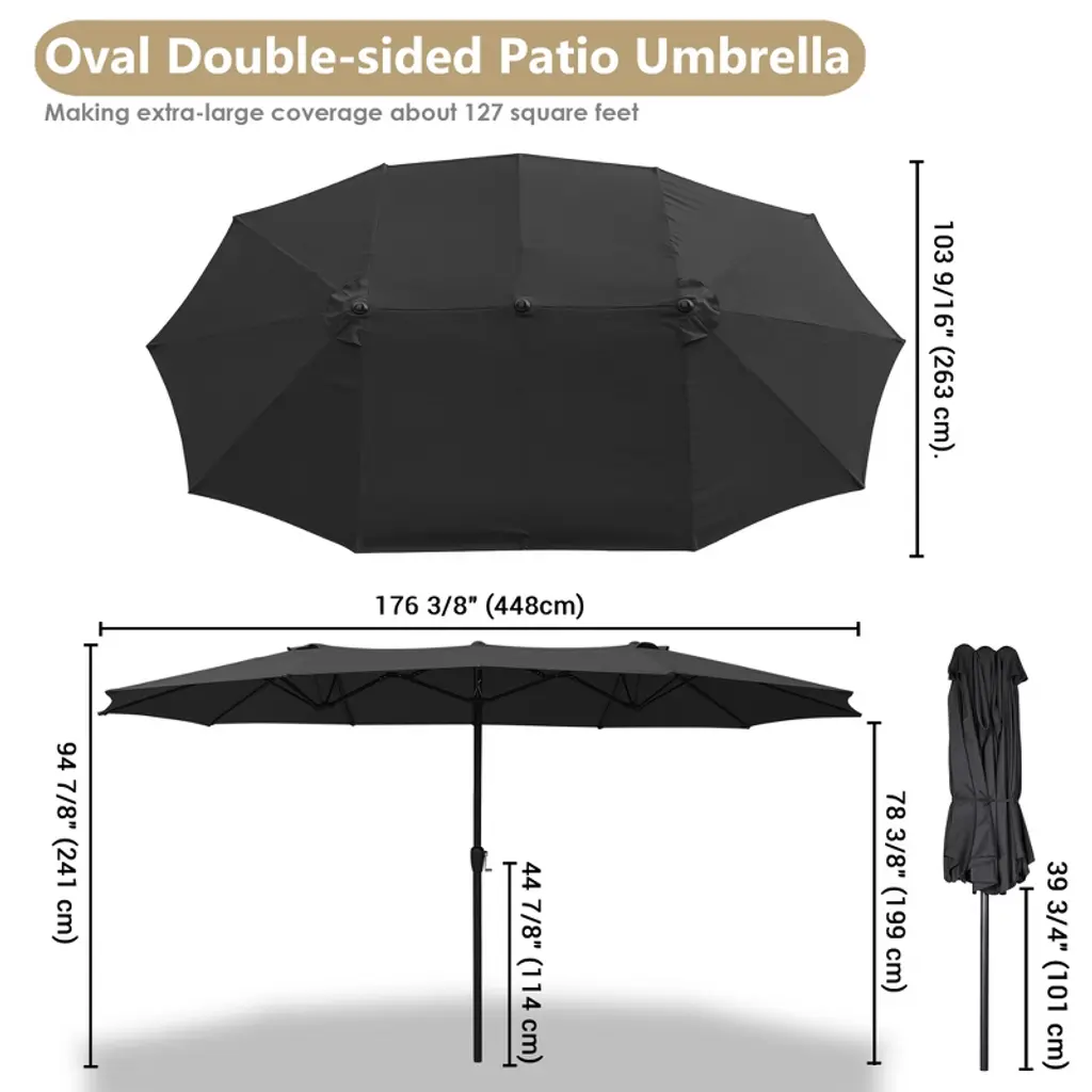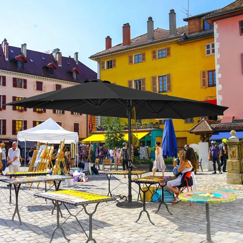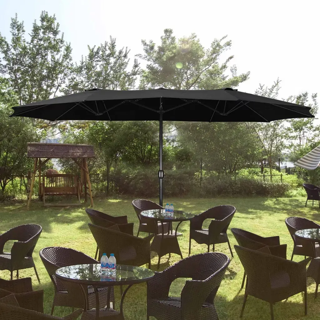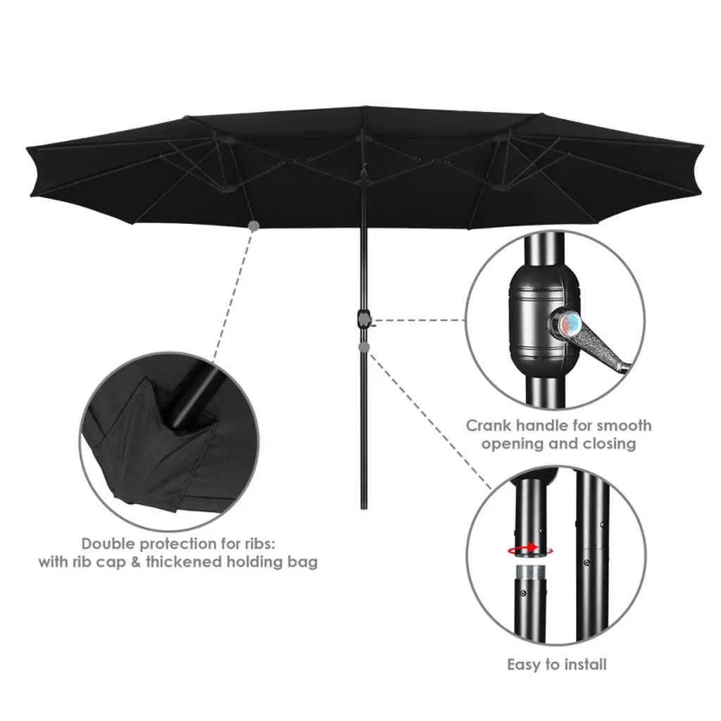 Yescom 14.7ft Double Sided Patio Umbrella With Crank Handle Uv30+ Outdoor Market Yard Black