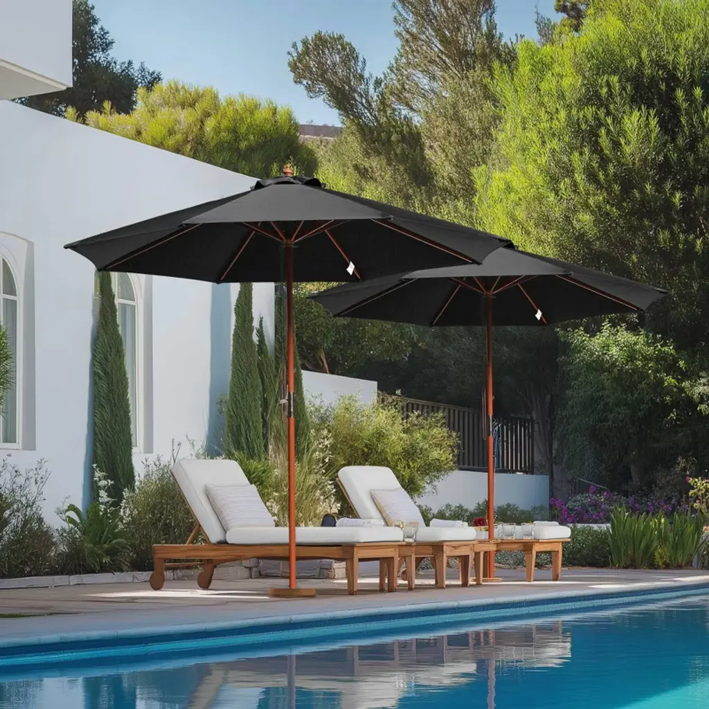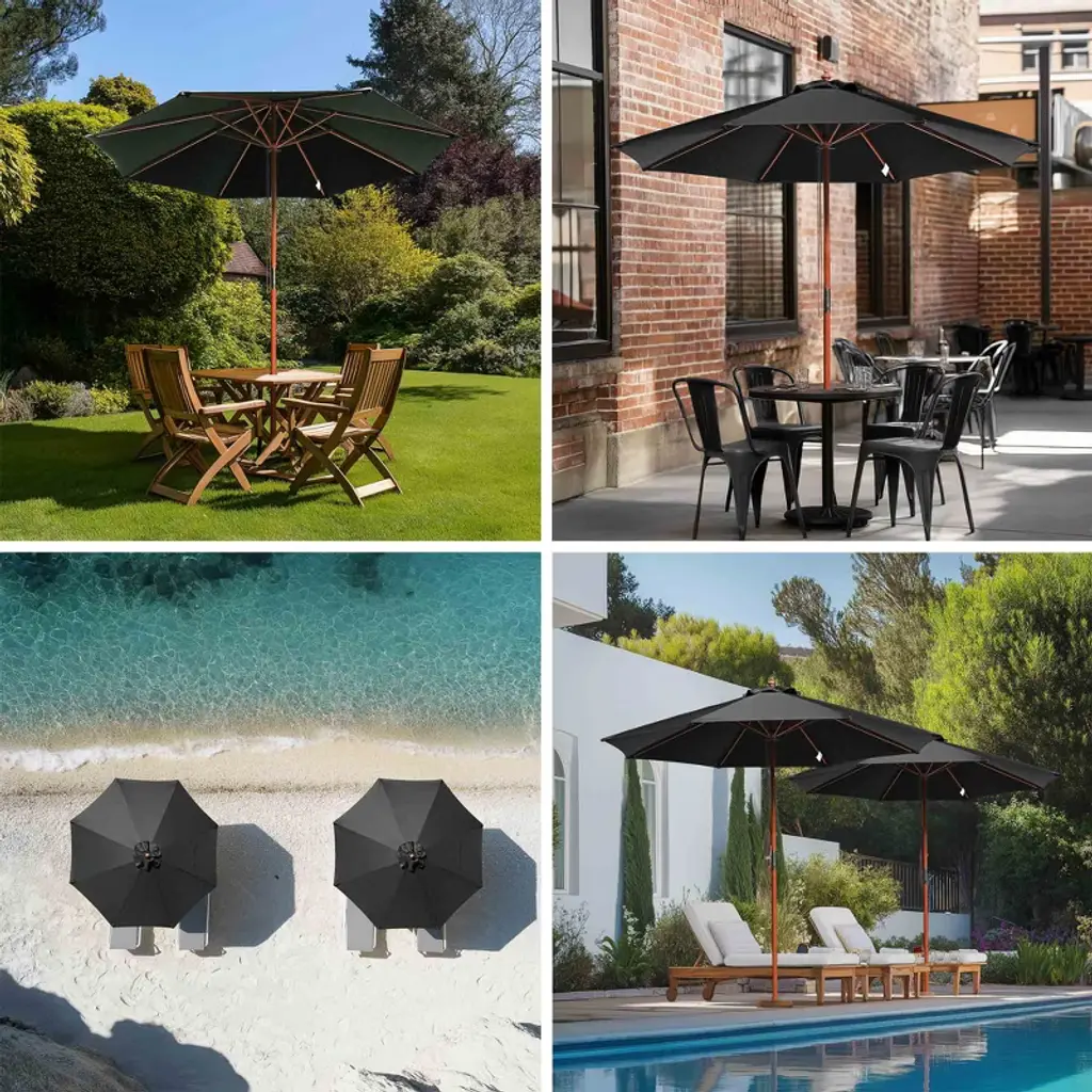 Yescom 9 Ft Wooden Pole Patio Umbrella Black