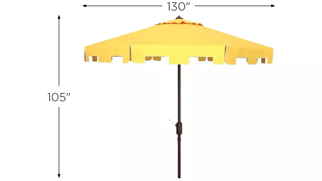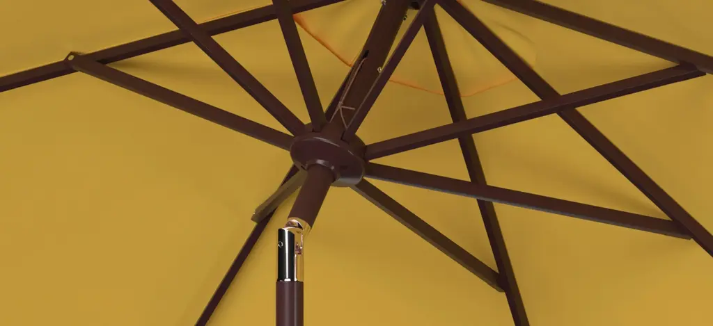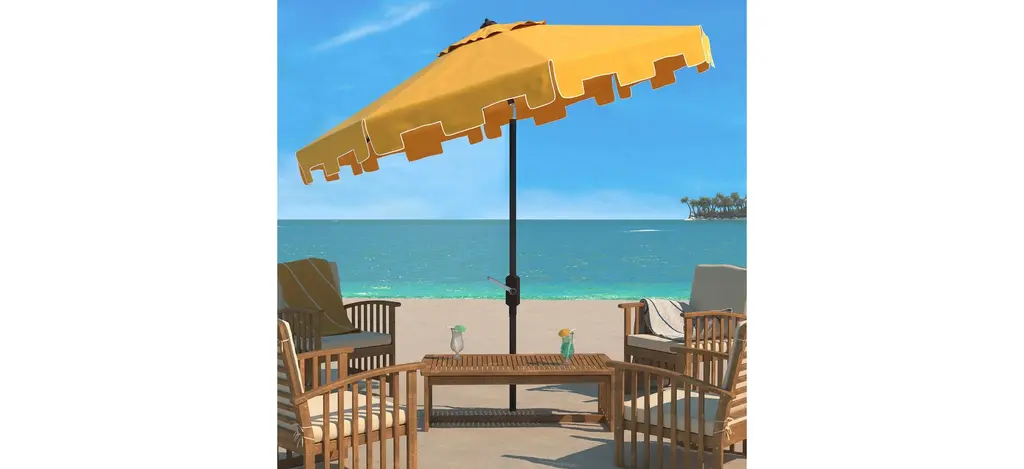 A classic Zimmerman 11' Patio Umbrella gets a chic makeover in fashionable with a stylish valance for extra sun protection and European flair. Its round eleven foot polyester canopy and aluminum post make it ideal for the veranda or pool deck. Includes easy crank and tilt mechanism.