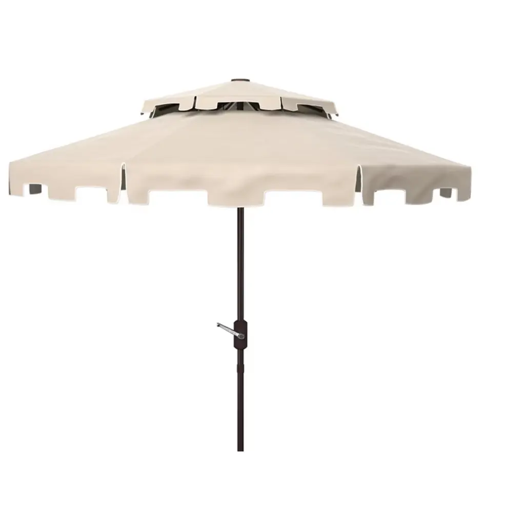 Zimmerman 7.5 Ft Square Market Umbrella W/ White Trim - Pat8400 - Beige/white - Safavieh