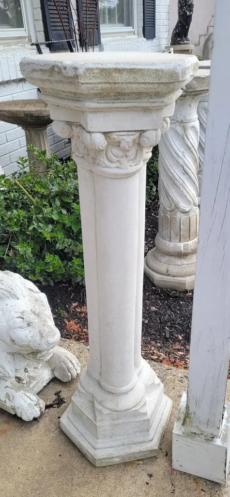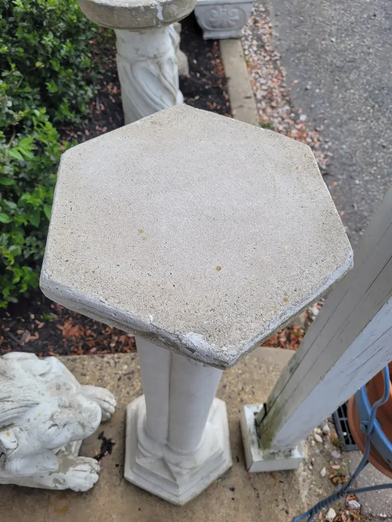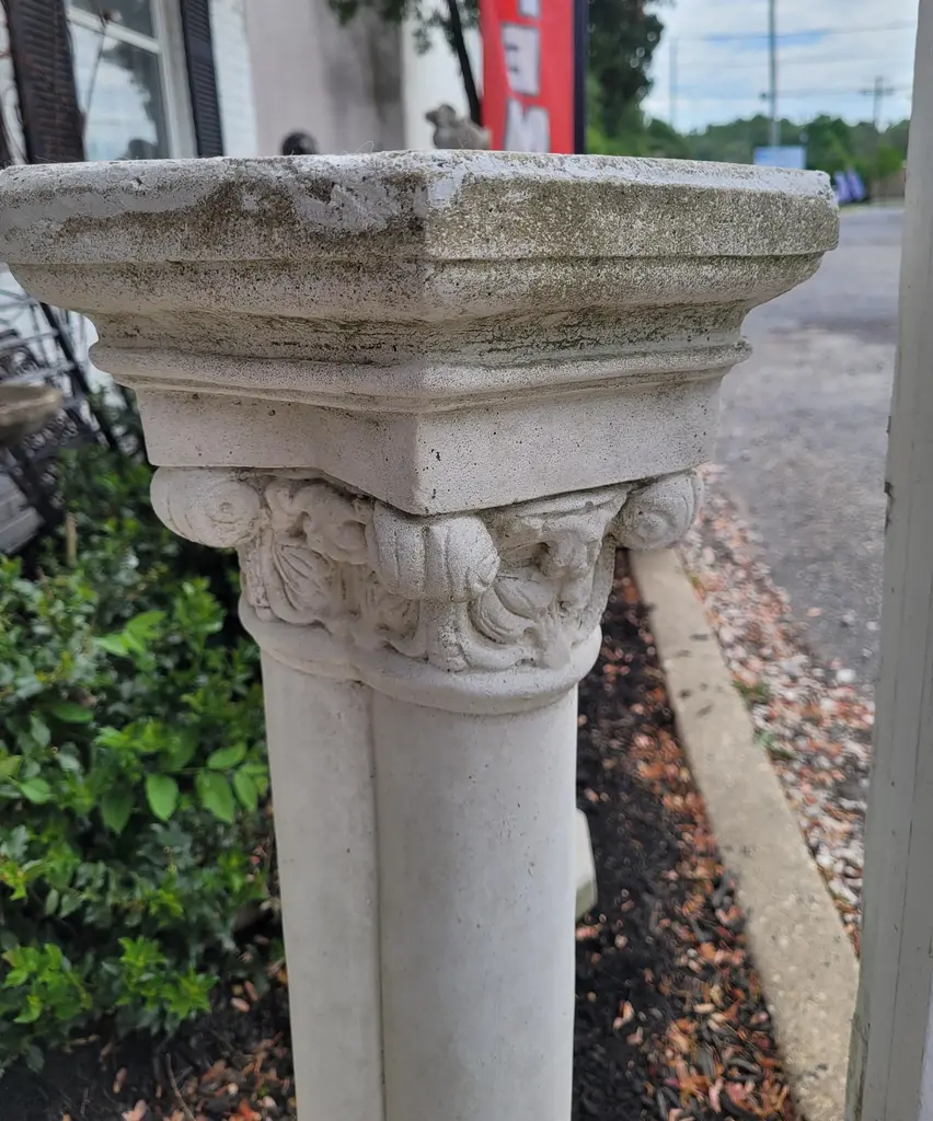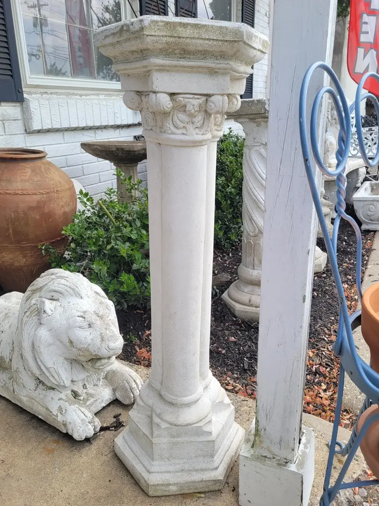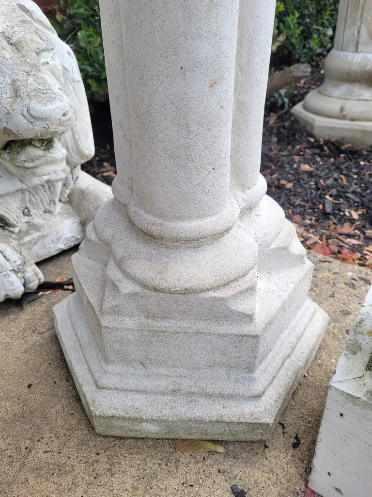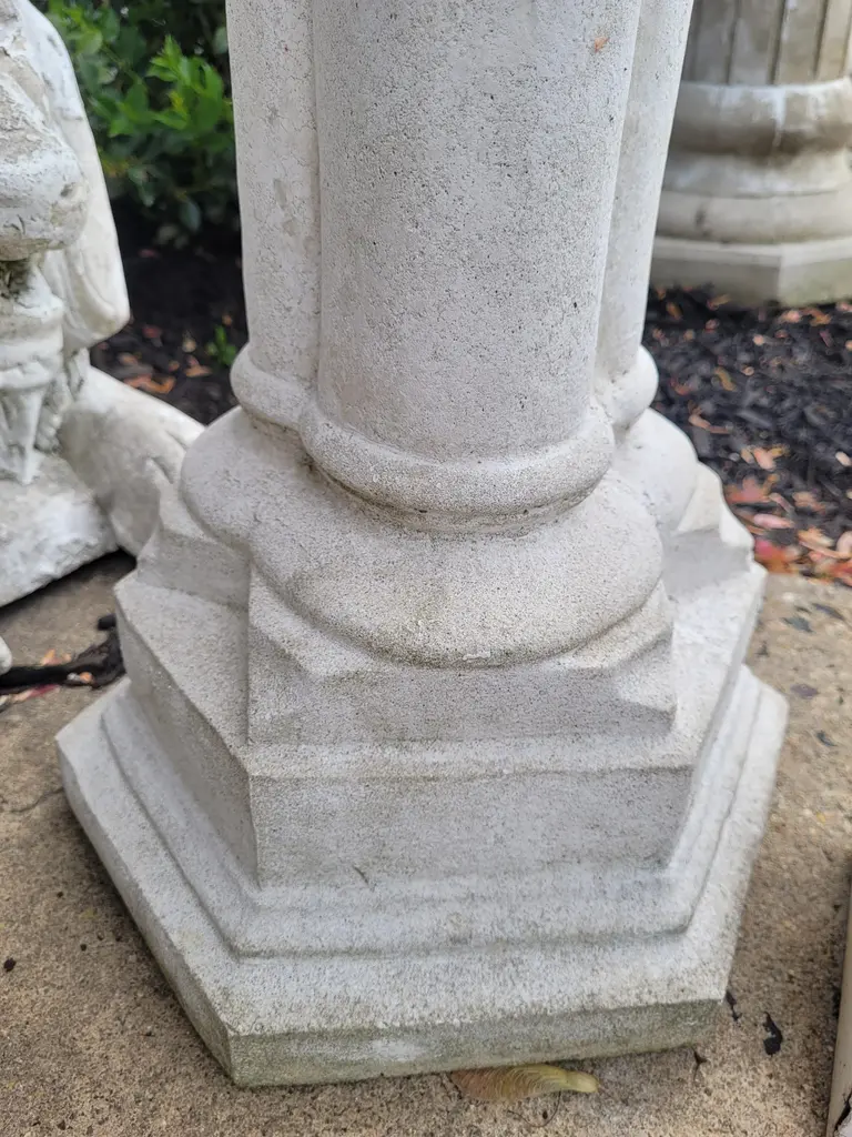 Fabulous vintage concrete gothic style pedestal from a fine a state. There are 3 available but selling one at a time. Each measure 36 and 1/2 inches tall by 11 inches by 11 inches wide. All are in great condition. They would make a fabulous indoor pedestal or an outdoor garden ornament.
