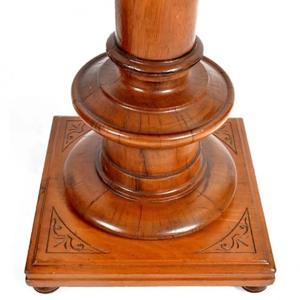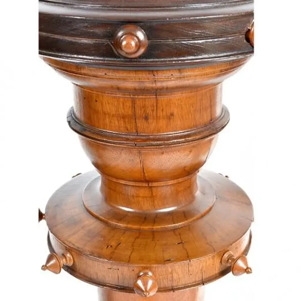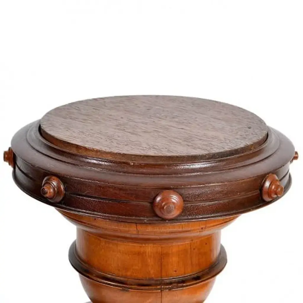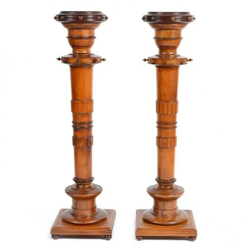 Pair of antique 19th century German Biedermeier solid walnut matching pair of a carved pedestals ,each column hand turned attached to the square base , both decorated with spike finials.