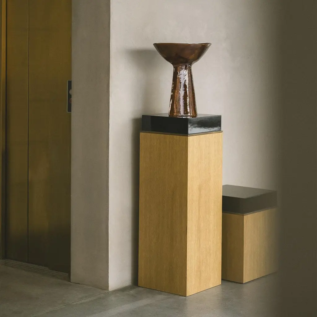 Block Pedestal, Natural Limed Oak and Brass Details, Handcrafted in Portugal by DuisttThe Block Pedestal is a strong masculine piece composed of clean lines and allowing a variety of finishes. The black limed oak creates a contrast against the high gloss lacquered wood and light bronze details. The pedestal is versatile for any interior and comes in a range of sizes, including the block side table.Shown in natural limed oak, black lacquered top and brushed brass details. Custom sizes and materials available upon request, production lead time 8 to 10 weeks. Designed and manufactured by Duistt in Portugal - Europe. Duistt arose in 2014 from the will and desire to produce high-end furniture pieces with special attention to quality and timeless design. Blending ancient knowledge and techniques with contemporary aesthetics, Duistt’ design approach elevates the user experience, guaranteeing them delightful pieces crafted with art that are absolutely unique and can last generations.