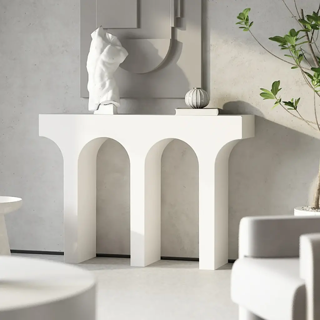 47" Japandi Narrow White Console Table With Pedestal Wood Entryway Table