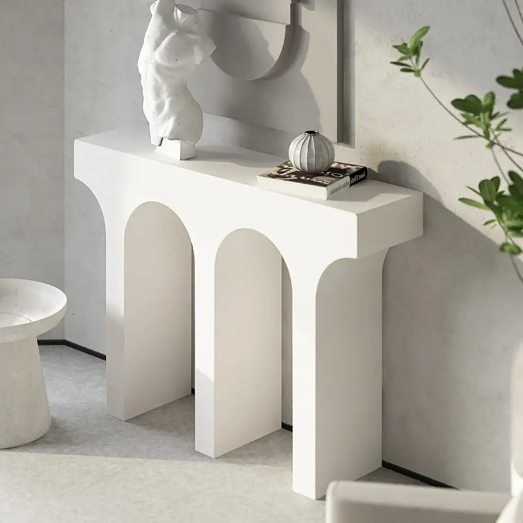 Flaunting a clean-lined silhouette and space to stage all your favorite stuff and flea market finds, this console table is a must-have for any home. Made from MDF, it features 3 pedestal and a streamlined look. In addition to the tabletop, it features an open storage shelf down below for books, potted plants, or anything else you want to show off. This Japandi entryway table offers ample storage space to keep items orderly and organized.