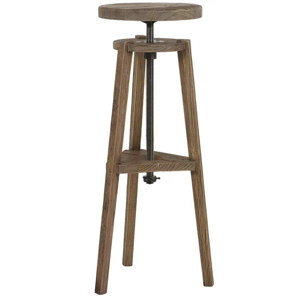 A French Industrial-inspired pedestal, ideal for displaying sculptures and vases. The threaded post allows for adjustable height, up to 50 inches.