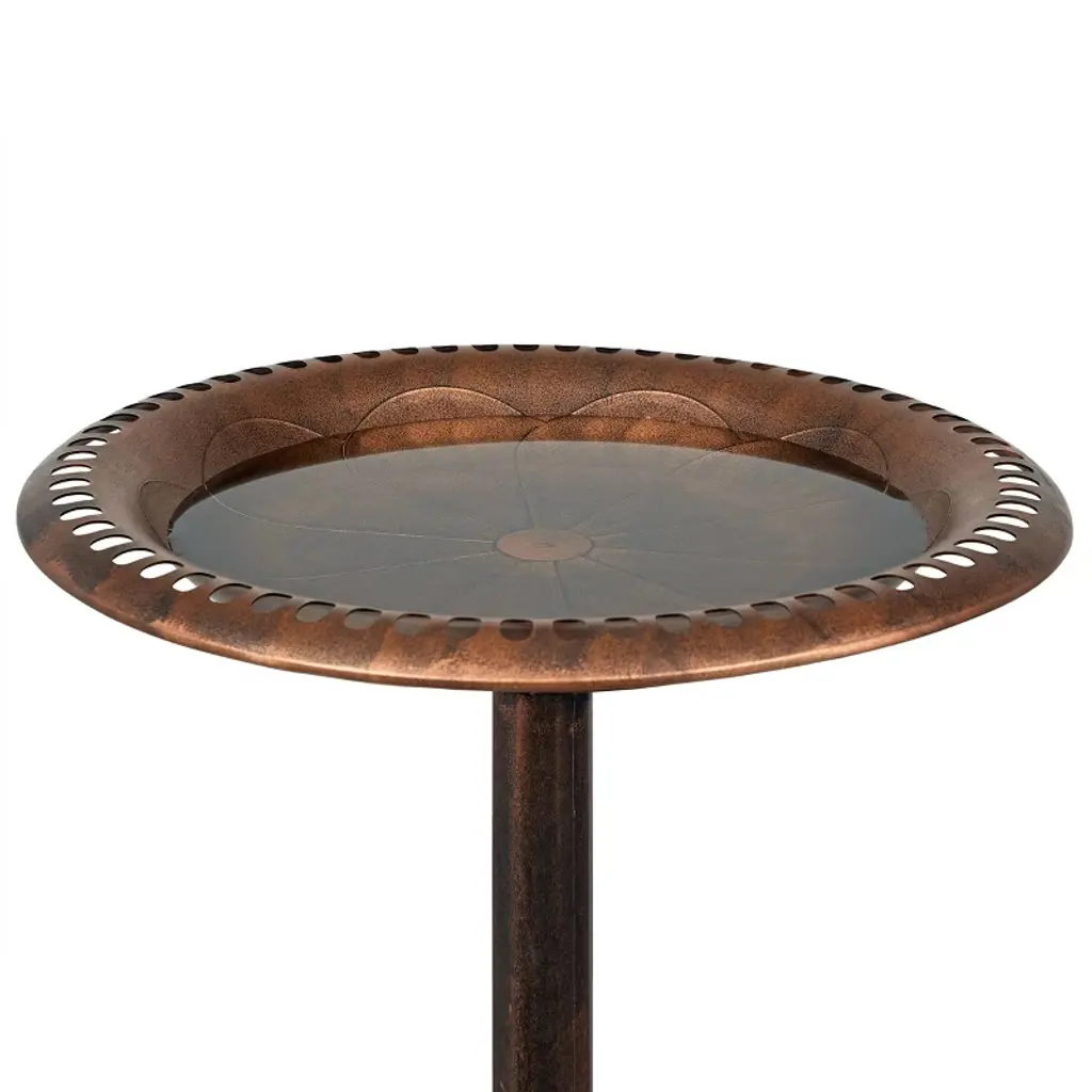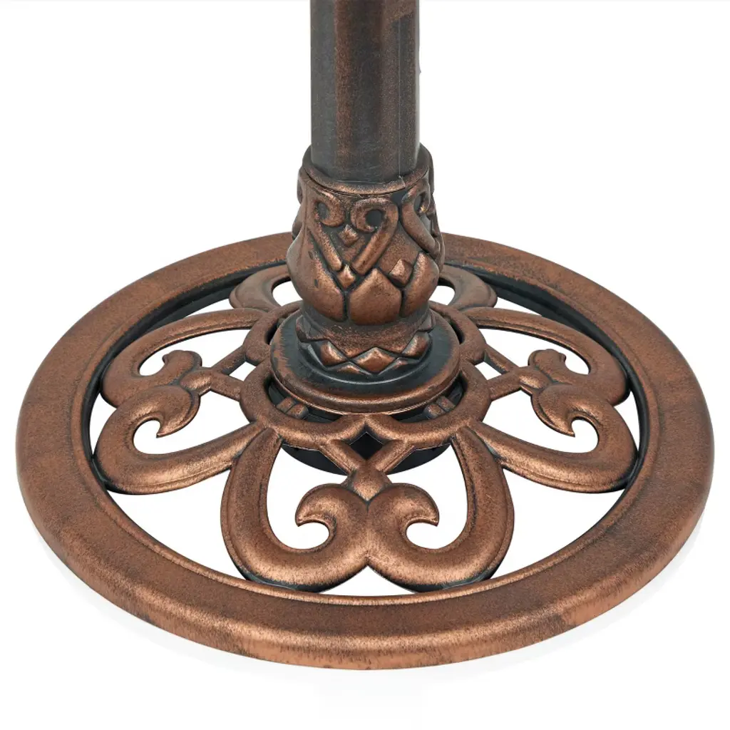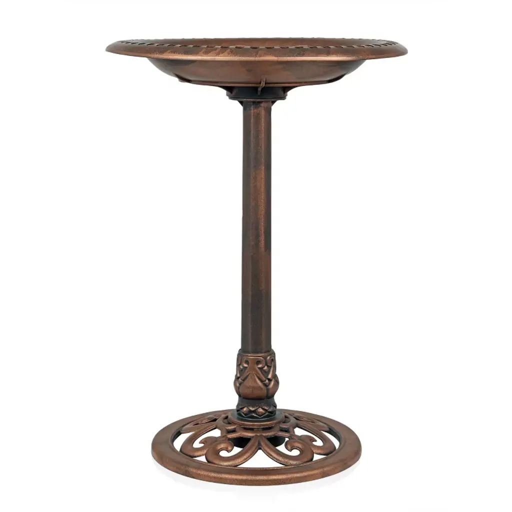 Enhance your outdoor space with Alpine Corporation Bronze Pedestal Birdbath with Scrollwork Base and Ground Stake. Standing tall at 28 inches, its scrollwork base adds an elegant touch, while the rich bronze color seamlessly integrates into any garden or patio. Crafted from durable yet lightweight polypropylene, this birdbath offers easy relocation without compromising stability. The 20-inch-diameter basin provides ample space for birds to enjoy, and with the customizable base that can be filled with gravel or stones, you can tailor the weight to your liking. The inclusion of two U-hooks and a ground stake ensures a hassle-free setup, offering both functionality and aesthetic appeal. With Alpine's 1-year warranty, you can Shop With Assurance and Buy With Confidence.