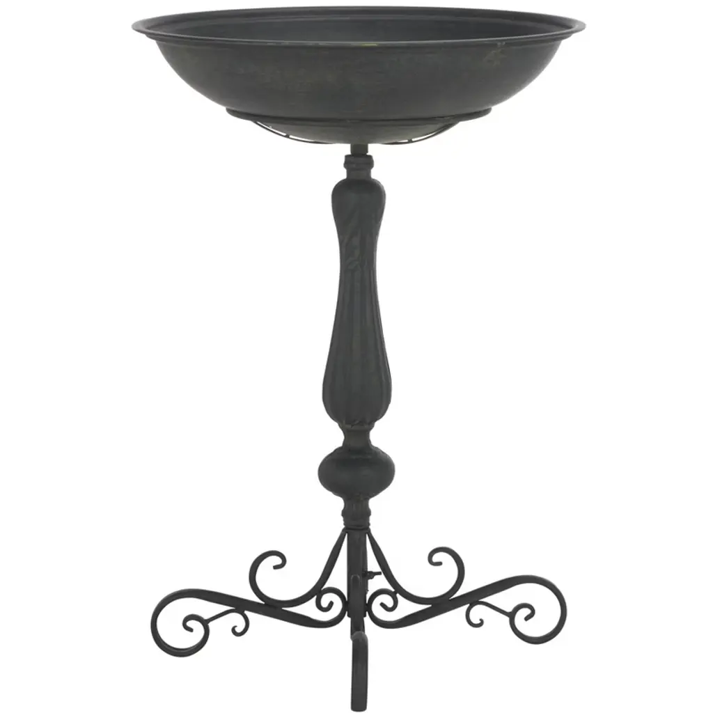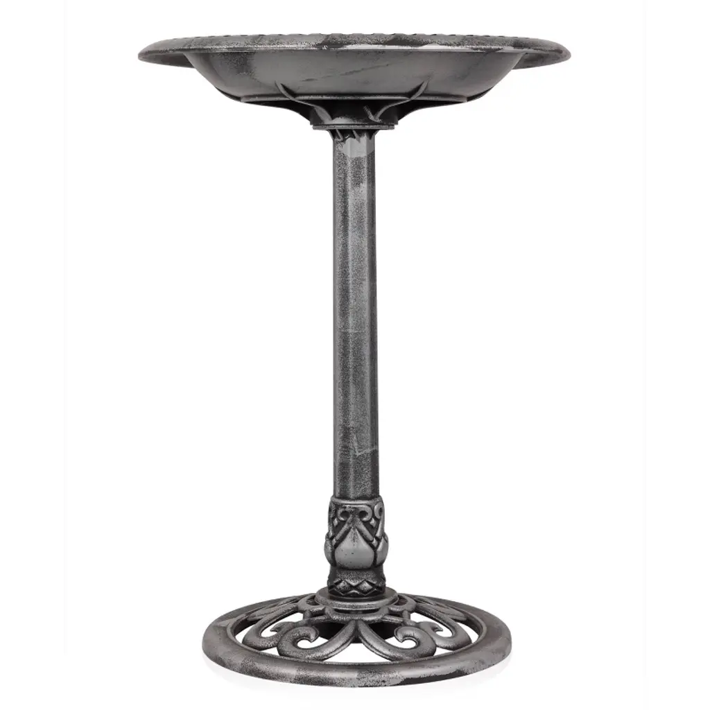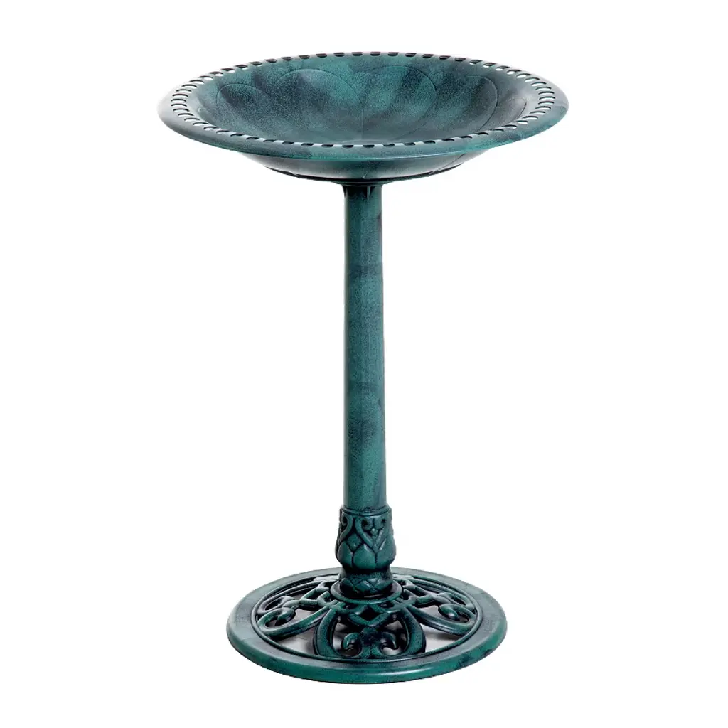 Elevate your outdoor space with Alpine Corporation Gray Pedestal Birdbath with Scrollwork Base and Ground Stakes, a stunning blend of artistry and functionality. Standing at an impressive 28 inches, the birdbath features an intricately designed scrollwork base, adding a touch of sophistication to your garden or patio. The grey cement color complements any outdoor setting, creating a visually appealing oasis that beckons birds to frolic and bathe in its spacious 20-inch-diameter basin. Crafted from durable polypropylene material, the birdbath ensures longevity without compromising on weight. The lightweight design allows for easy relocation while maintaining stability, making it a versatile and sturdy addition to your outdoor decor. Customize the base by filling it with gravel or stones, adapting the weight to suit your preferences, and ensuring a secure foundation. With two convenient U-hooks and ground stakes, the setup is effortless, promising a worry-free experience. With Alpine's 1-year warranty, you can Shop With Assurance and Buy With Confidence