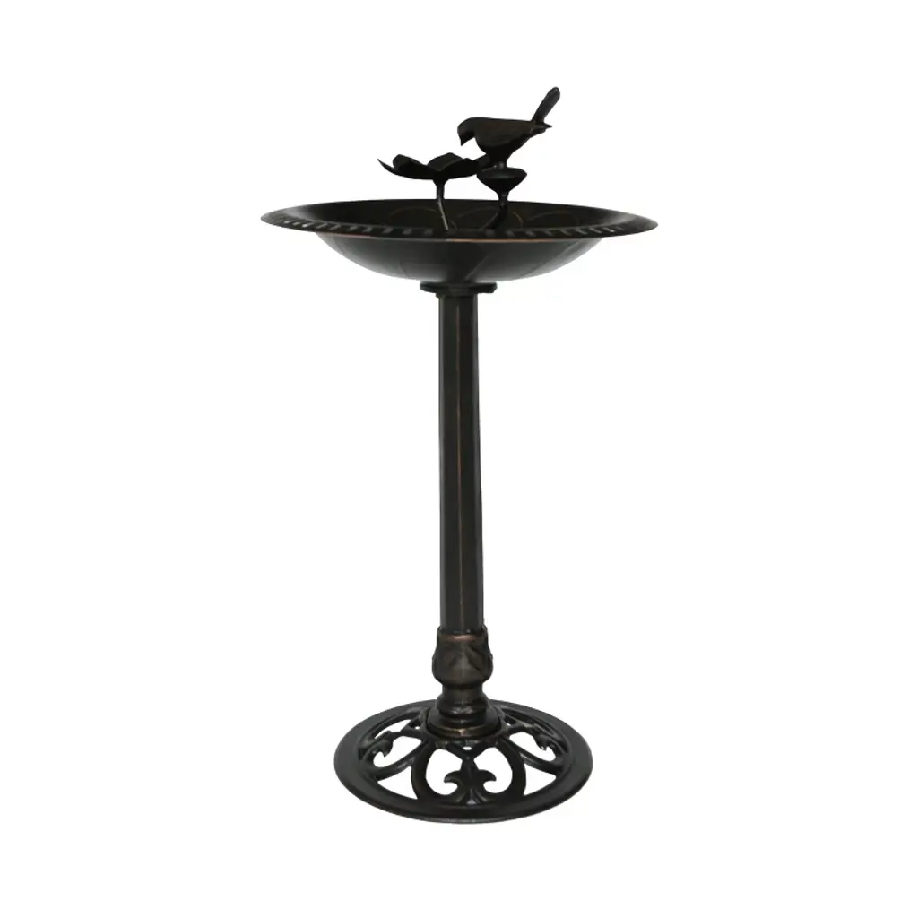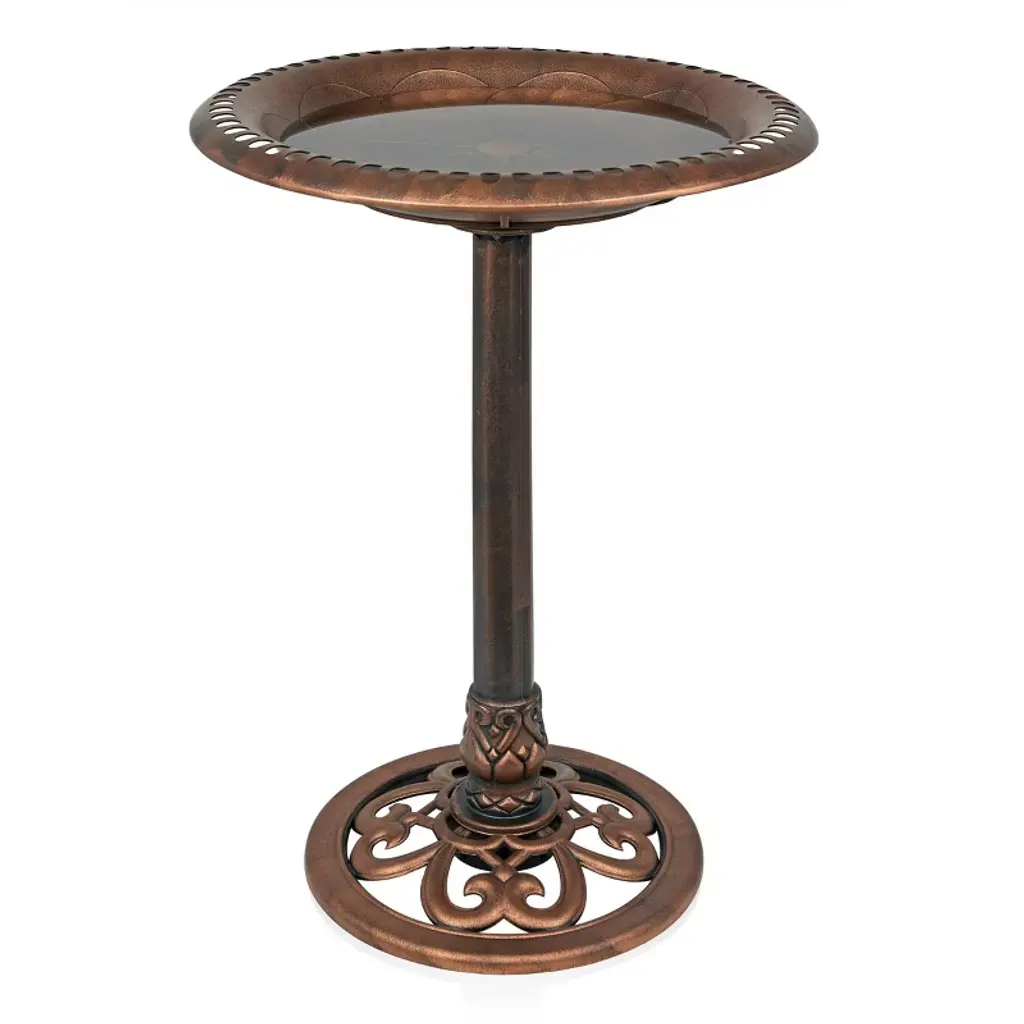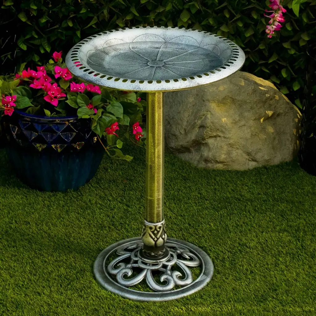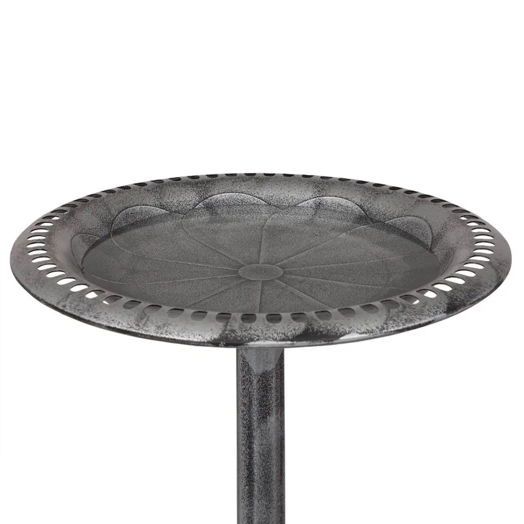 Elevate your outdoor space with Alpine Corporation Gray Pedestal Birdbath with Scrollwork Base and Ground Stakes, a stunning blend of artistry and functionality. Standing at an impressive 28 inches, the birdbath features an intricately designed scrollwork base, adding a touch of sophistication to your garden or patio. The grey cement color complements any outdoor setting, creating a visually appealing oasis that beckons birds to frolic and bathe in its spacious 20-inch-diameter basin. Crafted from durable polypropylene material, the birdbath ensures longevity without compromising on weight. The lightweight design allows for easy relocation while maintaining stability, making it a versatile and sturdy addition to your outdoor decor. Customize the base by filling it with gravel or stones, adapting the weight to suit your preferences, and ensuring a secure foundation. With two convenient U-hooks and ground stakes, the setup is effortless, promising a worry-free experience. With Alpine's 1-year warranty, you can Shop With Assurance and Buy With Confidence