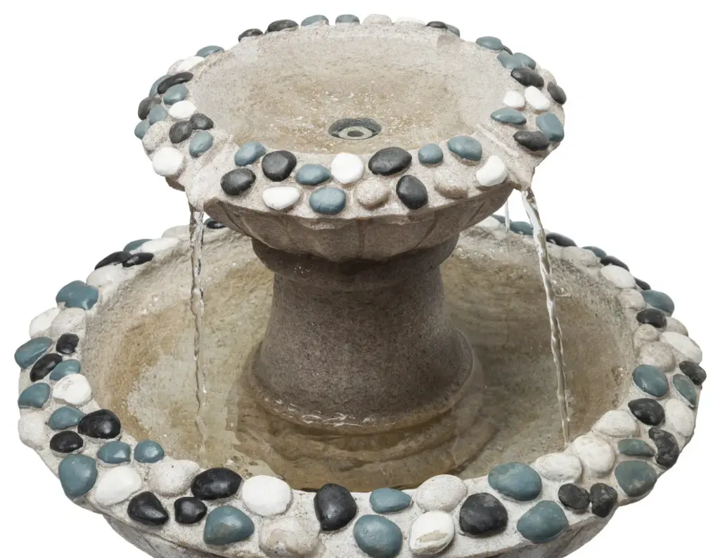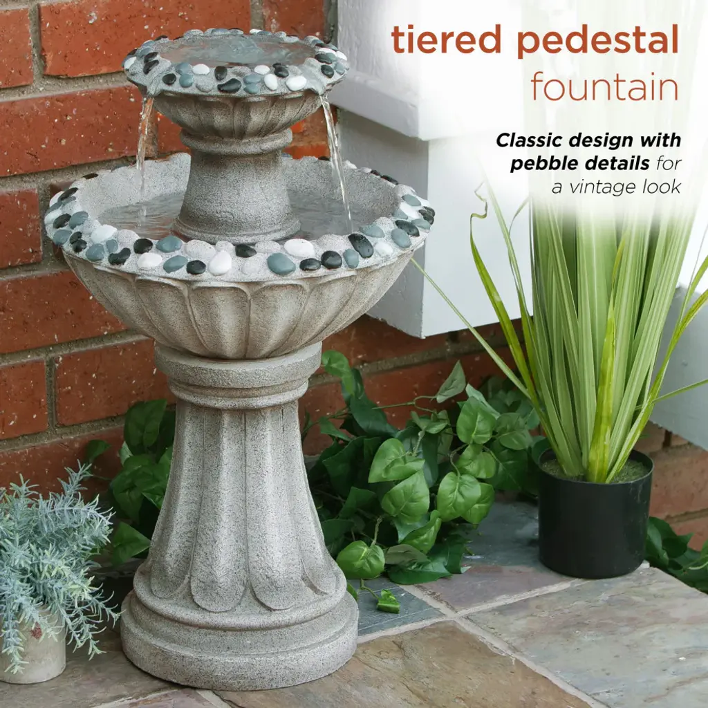 Alpine Grey Two Tier Pedestal Fountain, 24" Tall