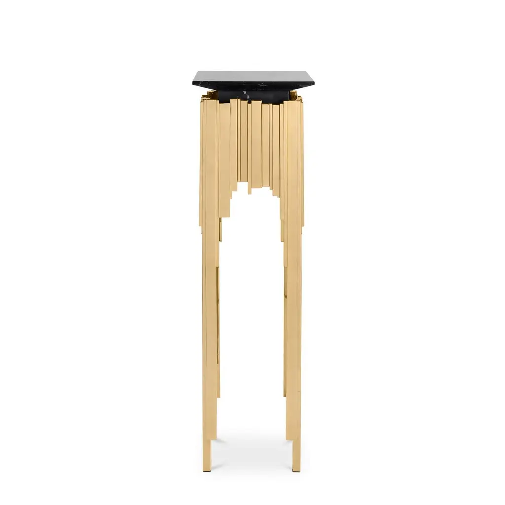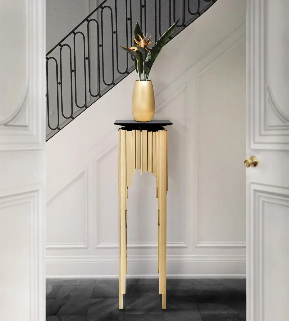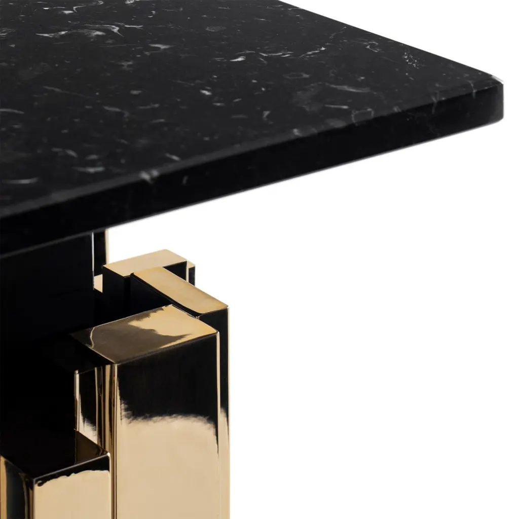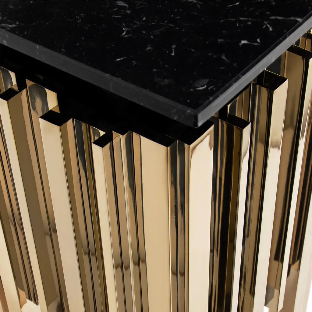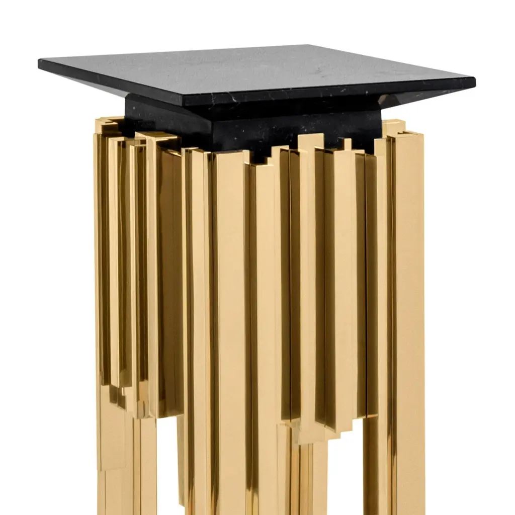 Pedestal Ambassador with solid brass base in polished finish and with black marble top.