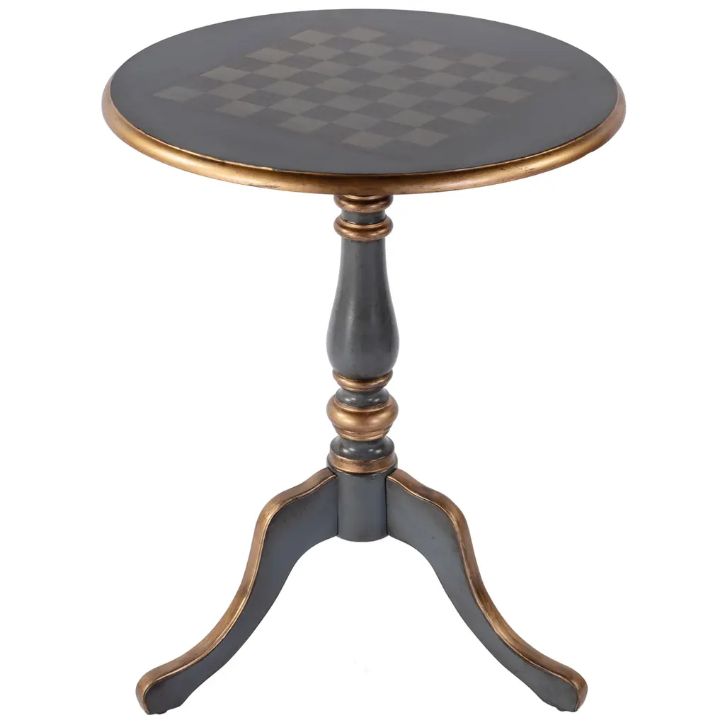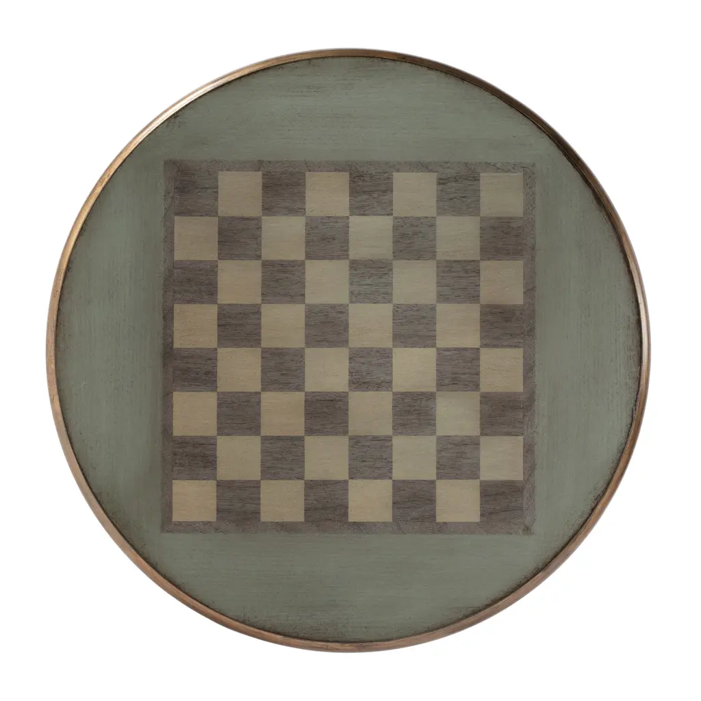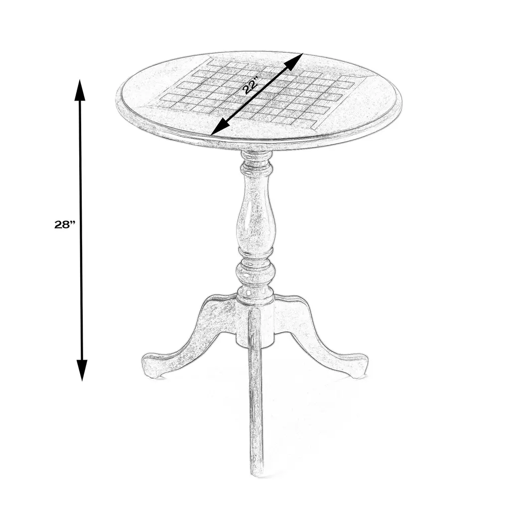 The Archibald 22 in. W Round Wood Pedestal Game/Accent Table is a delightful addition to any living space, combining fun and sophistication. Expertly crafted from select hardwood solids and wood products, this table is designed to be the perfect size for any room. Its light and compact pedestal base allows for comfortable table sitting, while the integrated chess/checkerboard makes it ideal for family game nights.