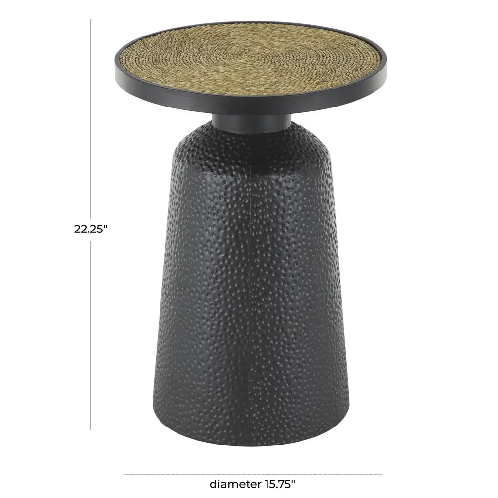 Astrid Black Metal And Seagrass Rope Pedestal Side Table