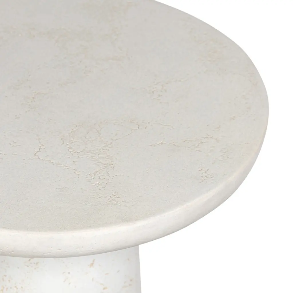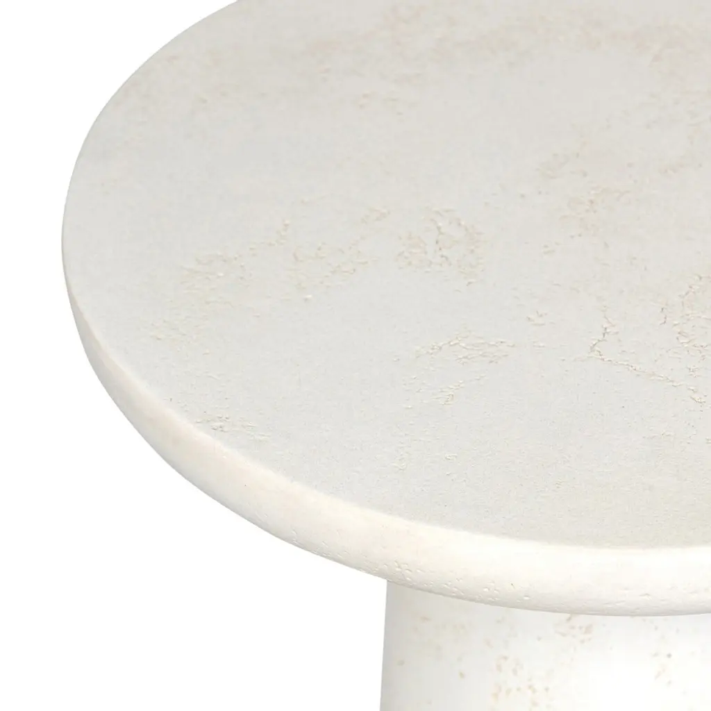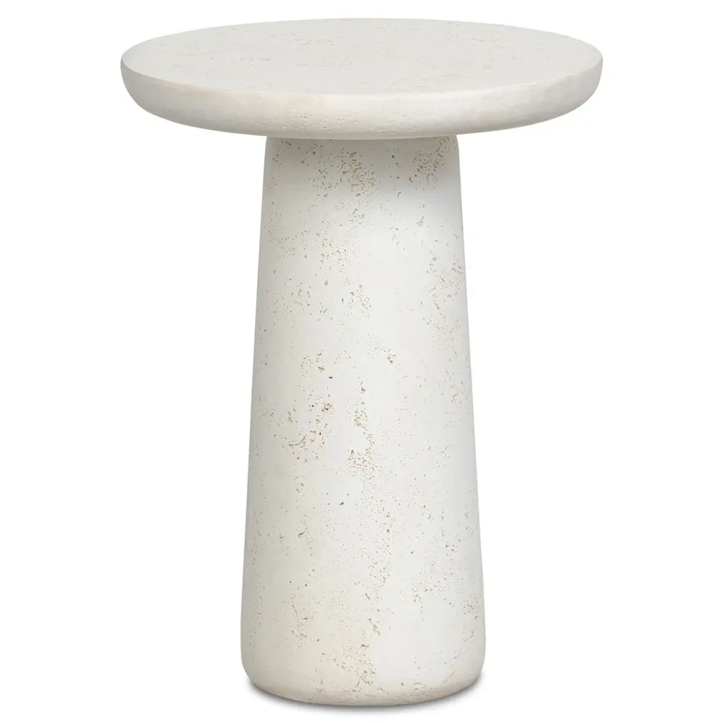 Aurore Modern Classic Aged White Concrete Round Pedestal Outdoor End Table - 16"