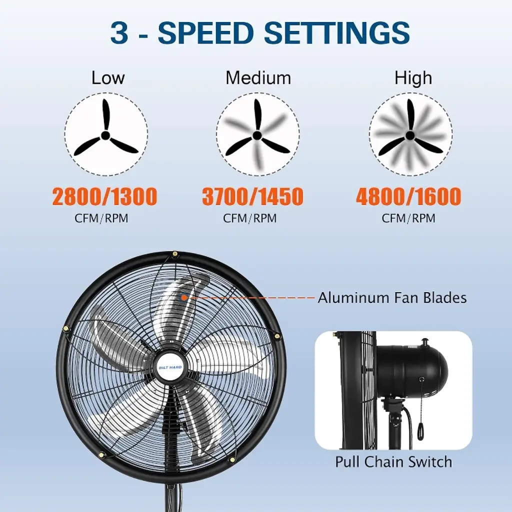 BILT HARD 18" Industrial Wall Mount Fan, 3-Speeds High Velocity Wall Fan with Sealed Motor, 4300 CFM Heavy Duty Metal Barn Fans