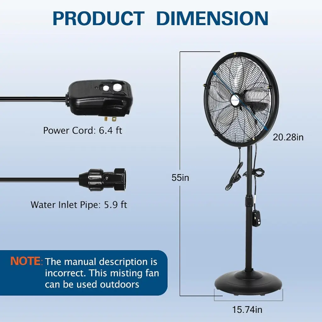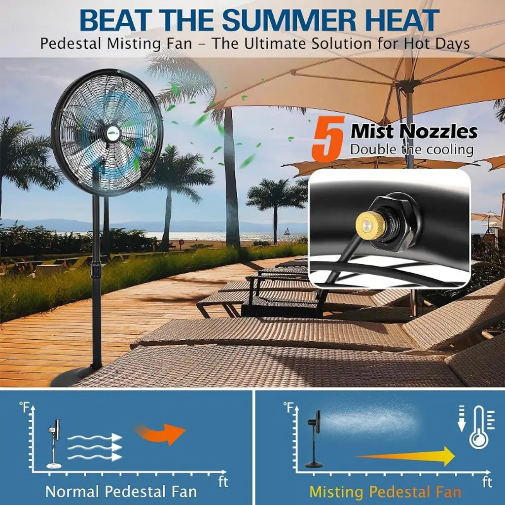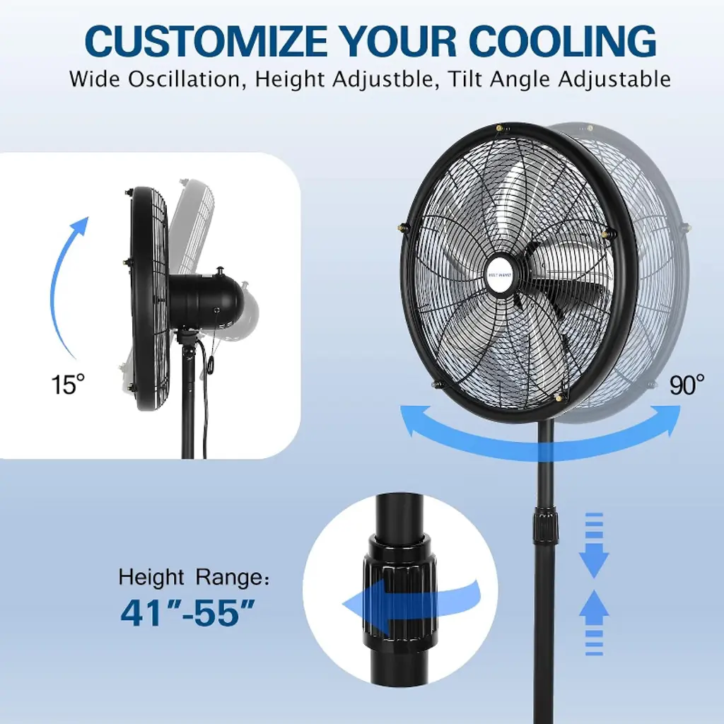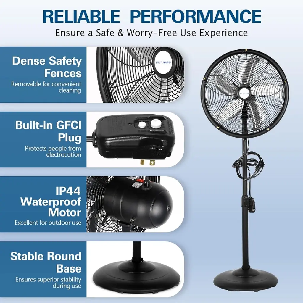 Bilt Hard 18" Pedestal Oscillating Misting Fan High-velocity 3-speed Patio Fans Adjustable Height 120° Oscillation Waterproof Fan For Outdoor