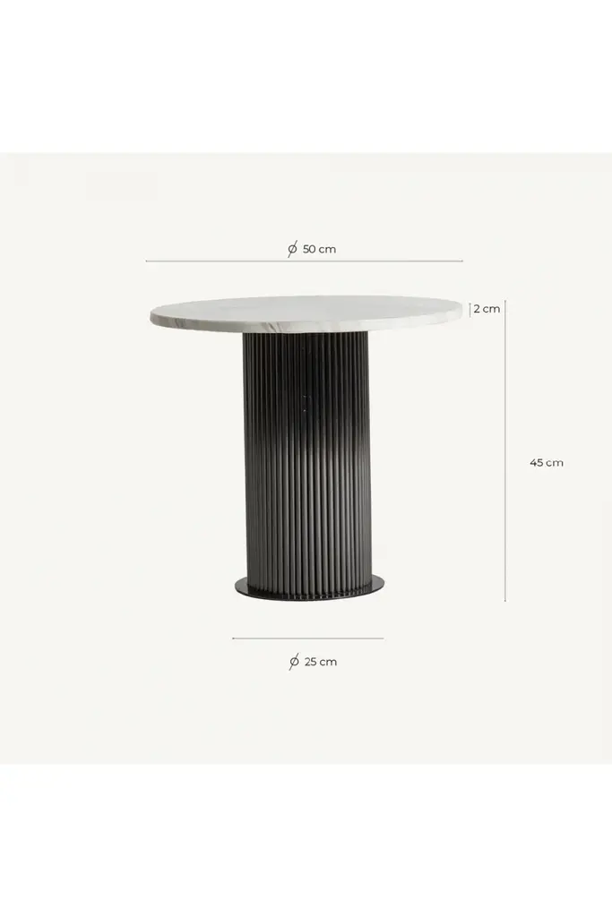 The Coen Side Table by Vical Home is the definition of timeless design. Crafted from black/white steel and complemented with faux marble, this table elevates any space. Its sturdy frame and round design make the black marble side table an essential piece for a modern and sophisticated interior.