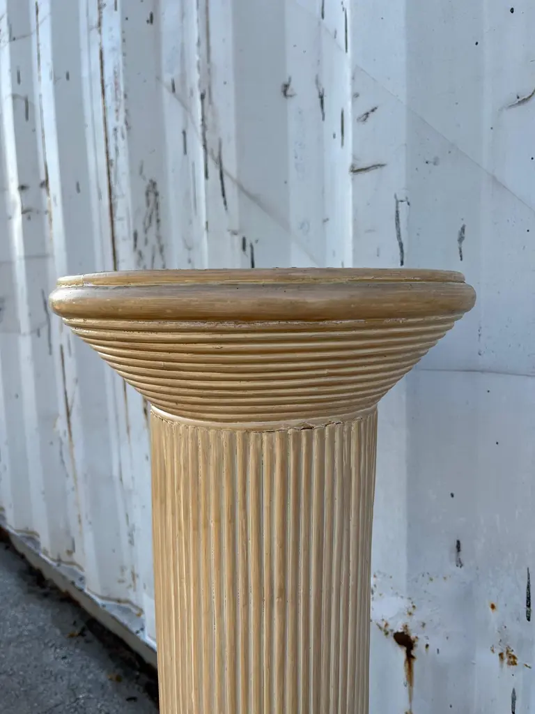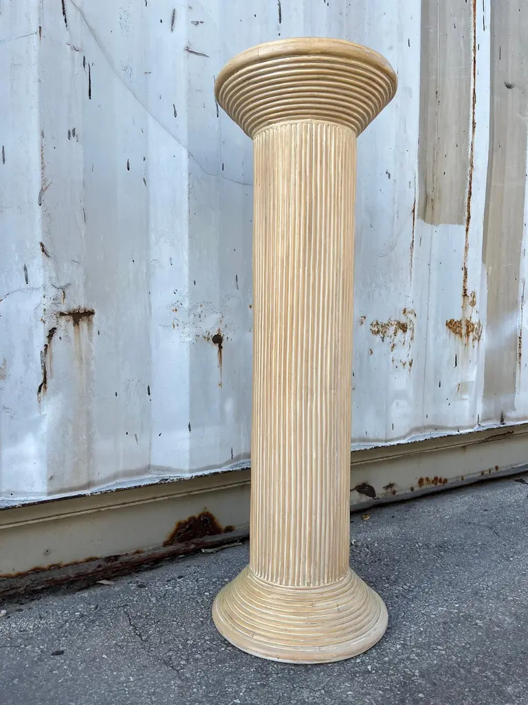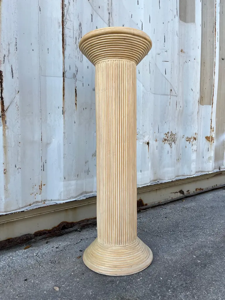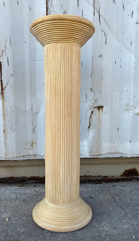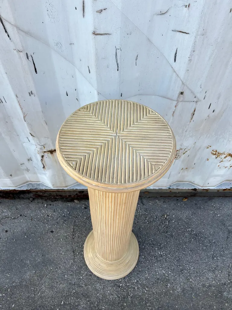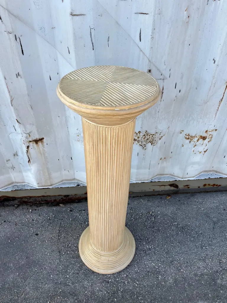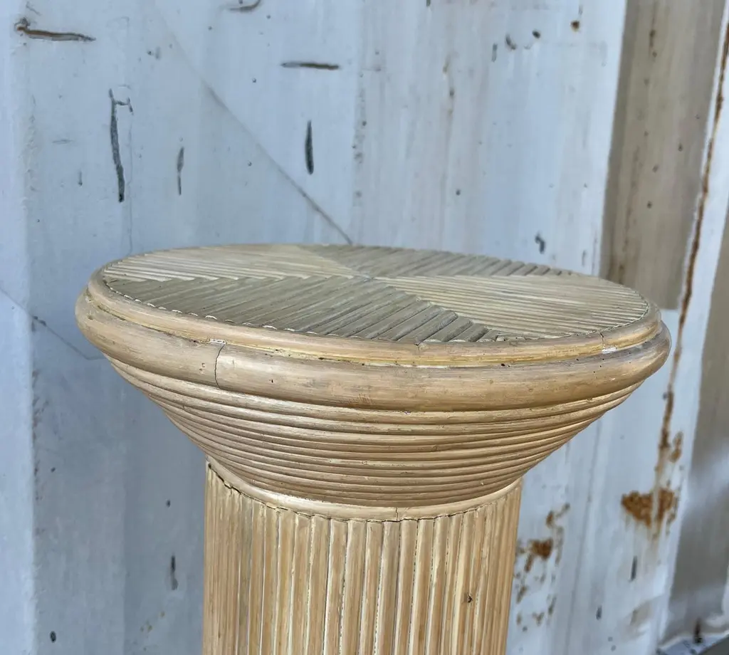 Bohemian / Coastal Style Split Reed Rattan Pedestal Column. Circa 1980s