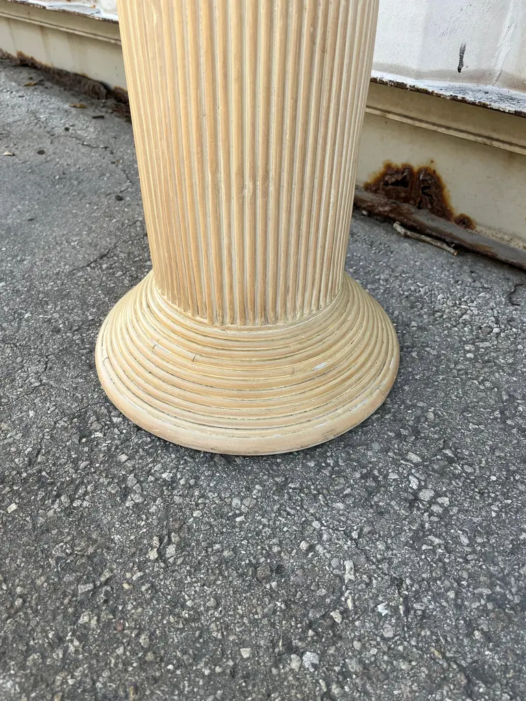 Vintage Bohemian / Coastal Style Split Reed Rattan Pedestal Column. Circa 1980sFeatures a wooden body covered with a white-washed split reed cladding, a round top, and a base.In good original condition with minor signs of wear and age. Please see close-up pictures for more details.Dimensions:W 12" x D 12" x H 36"