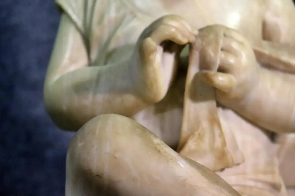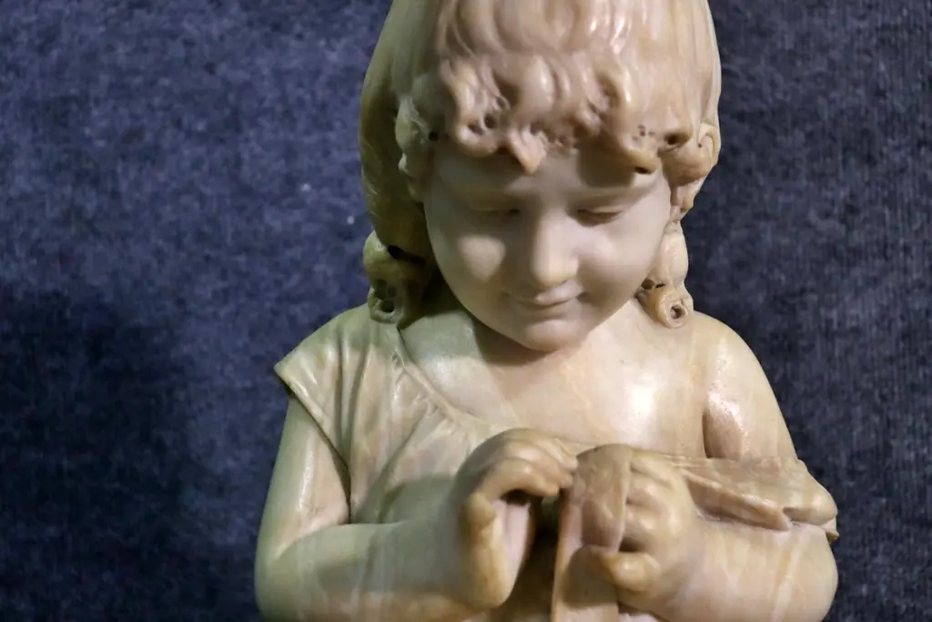 Cesare Lapini Alabaster Sculpture Girl And Green Onyx Pedestal