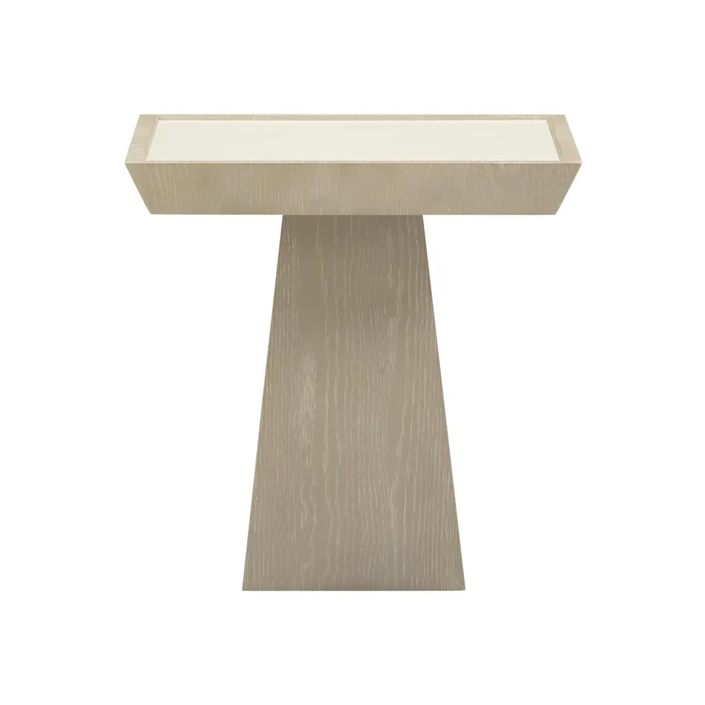 This handsome addition boasts a solid, tapered frame, elevated by rounded accents and a square base. Its organic wood graining lends visual texture and a natural look. Style in an entryway, living room, or hallway for a tasteful statement.