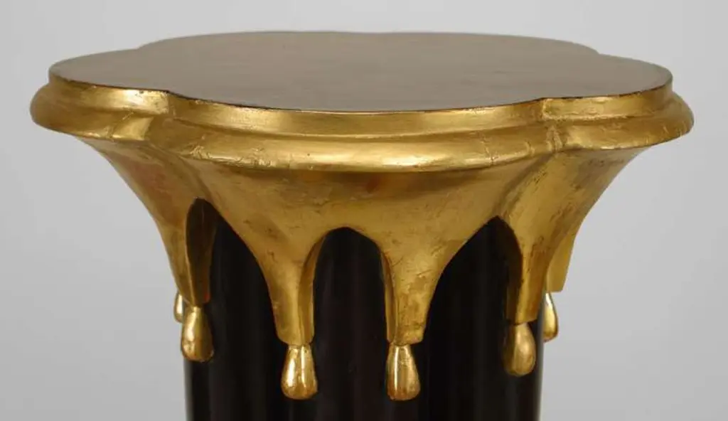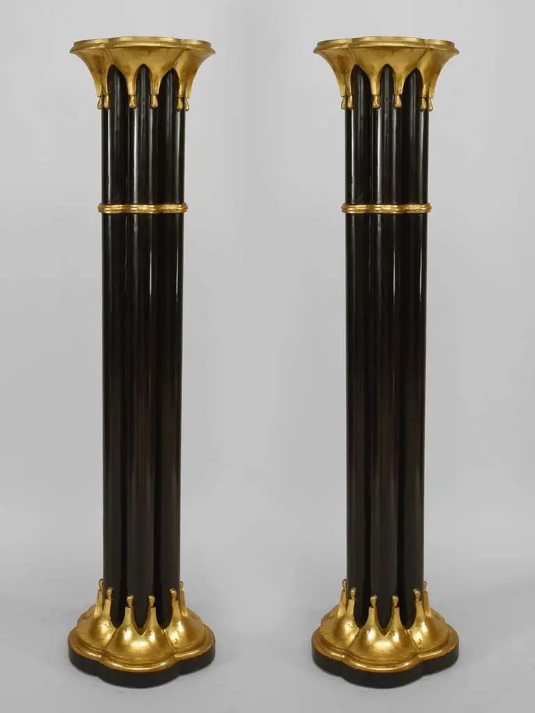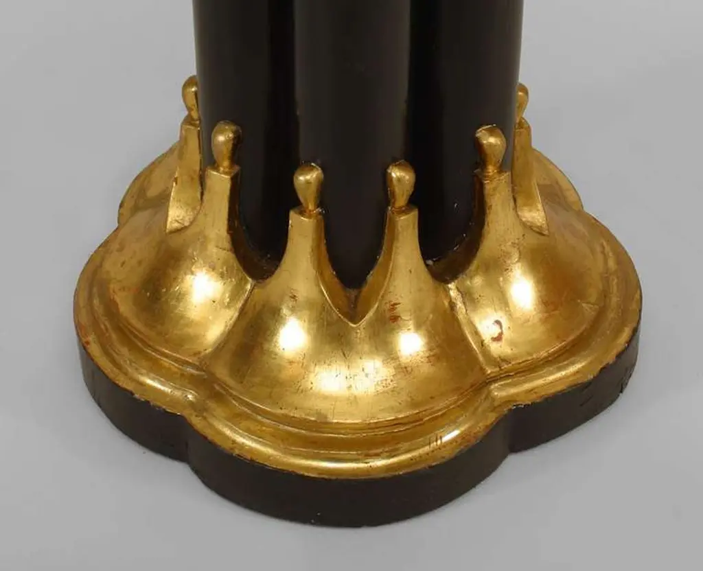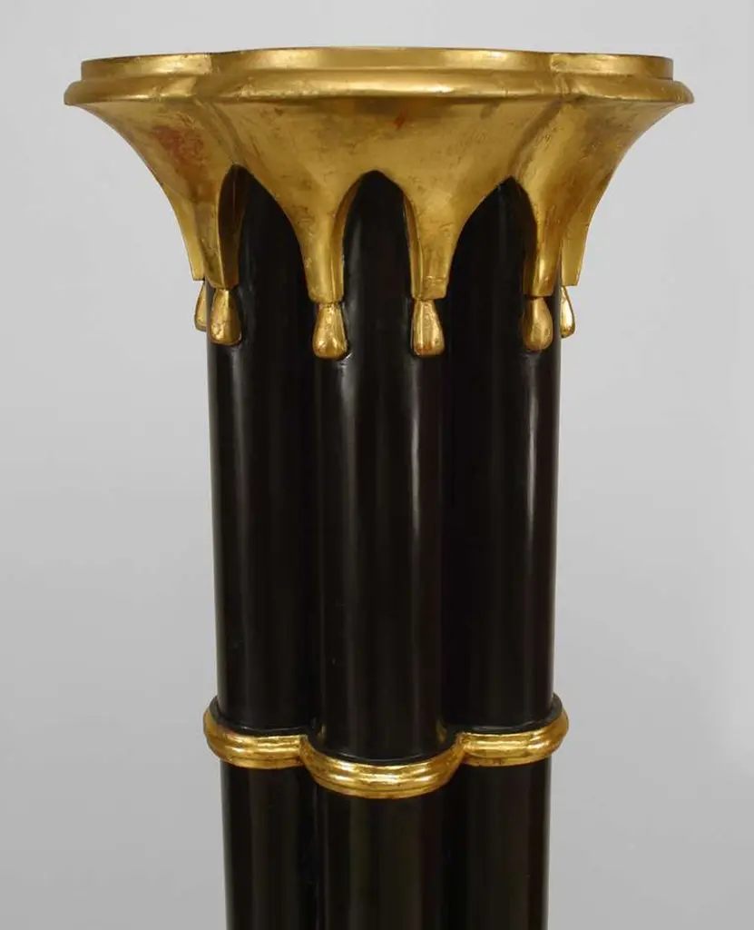 2 Pair of English Chinese Chippendale style painted black and gold clover shaped 5 column pedestals. (19th Cent) (PRICED PER Pair)