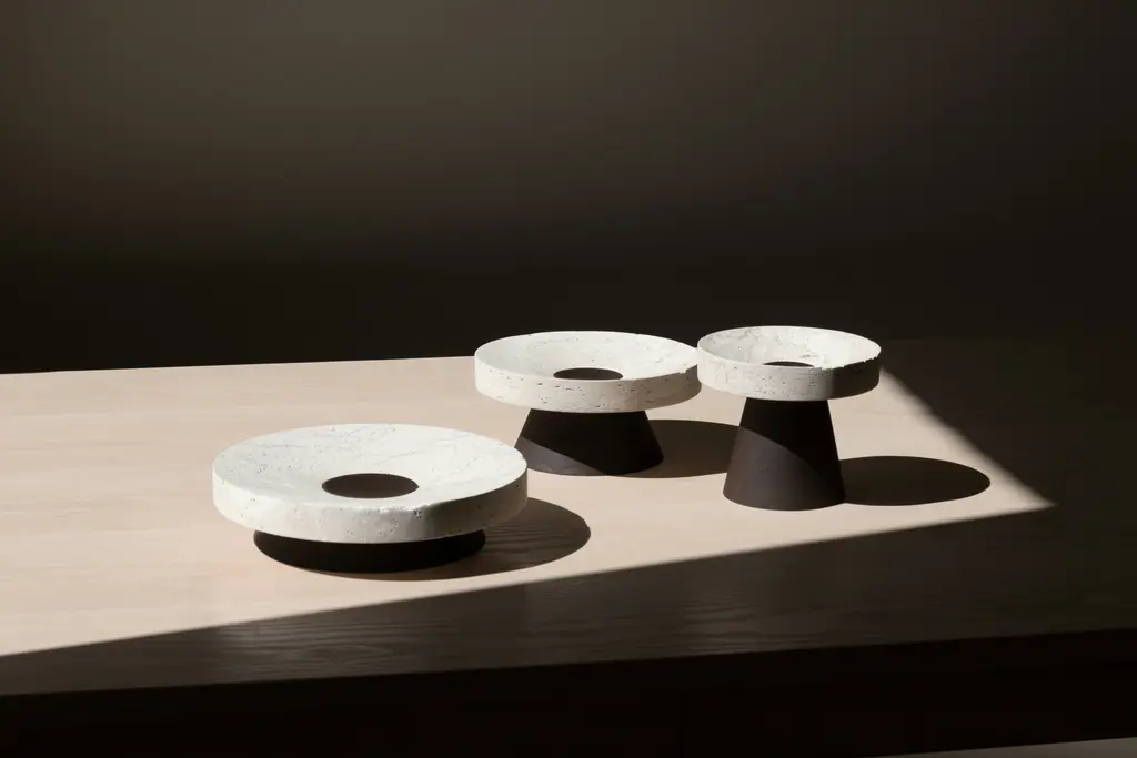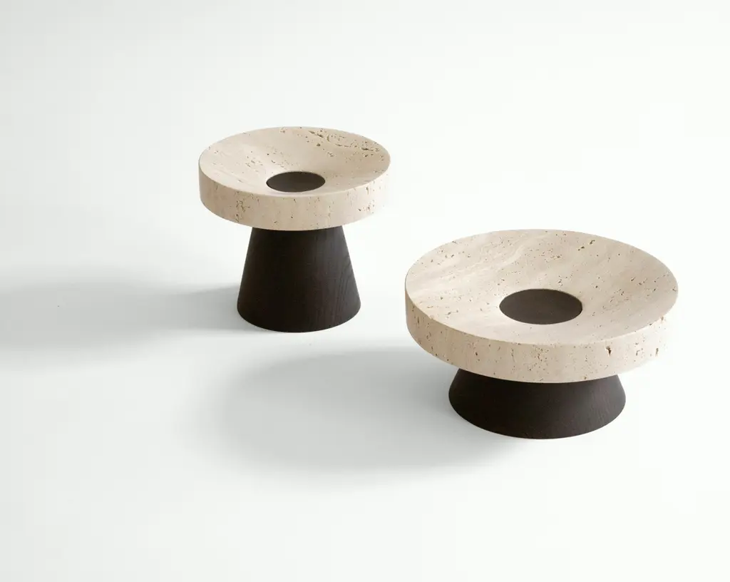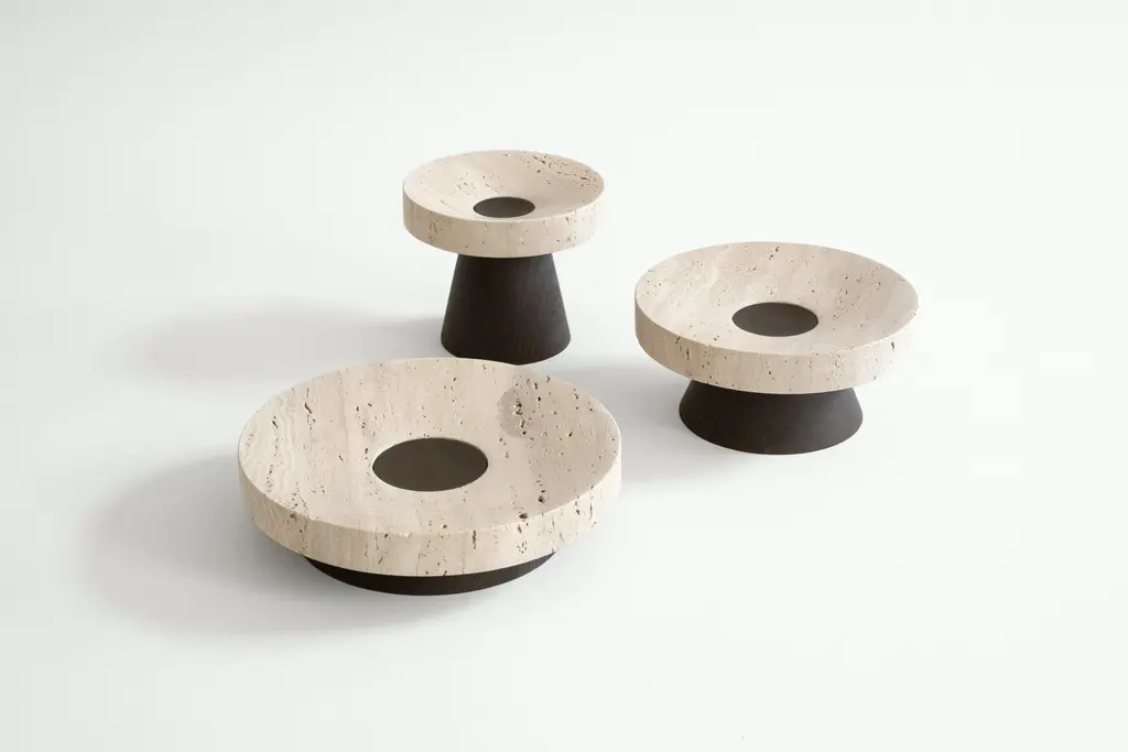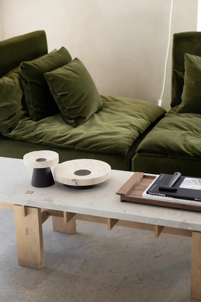 The Coliseau Pedestal, designed by Gabriel Tan and handcrafted by artisans in Portugal, literally elevates anything you place in it, from sea glass to pistachios. Tan's design was inspired by ancient amphitheaters, combining a Roman travertine tray with a smoked ash base. This sculptural piece celebrates the beautiful variations in tone, grain, and texture of these natural materials. Made in Portugal.