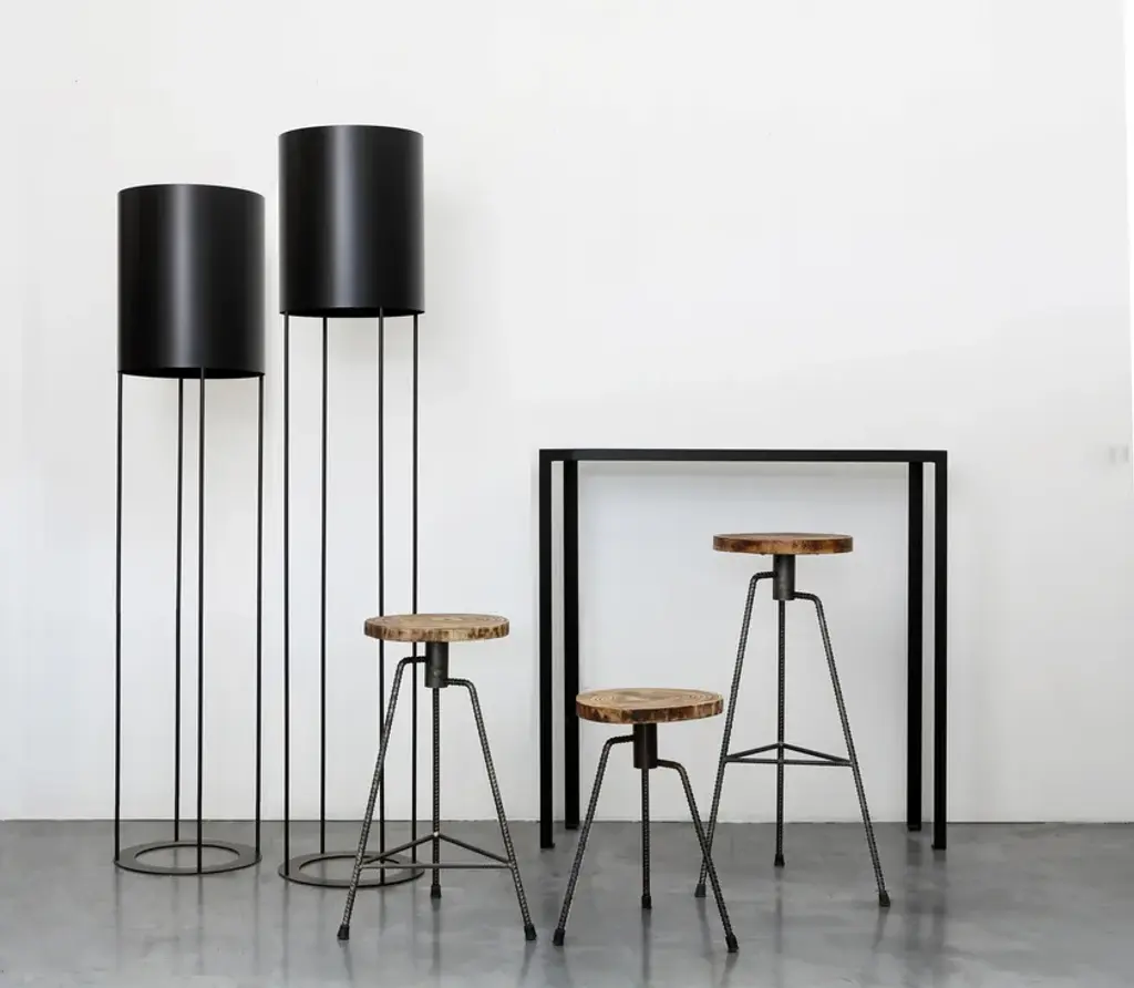 Console Slim is a linoleum pedestal.Frame: Semiopaque blackTop: Black linoleum