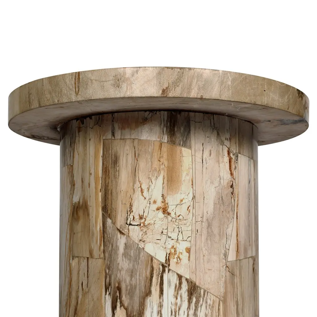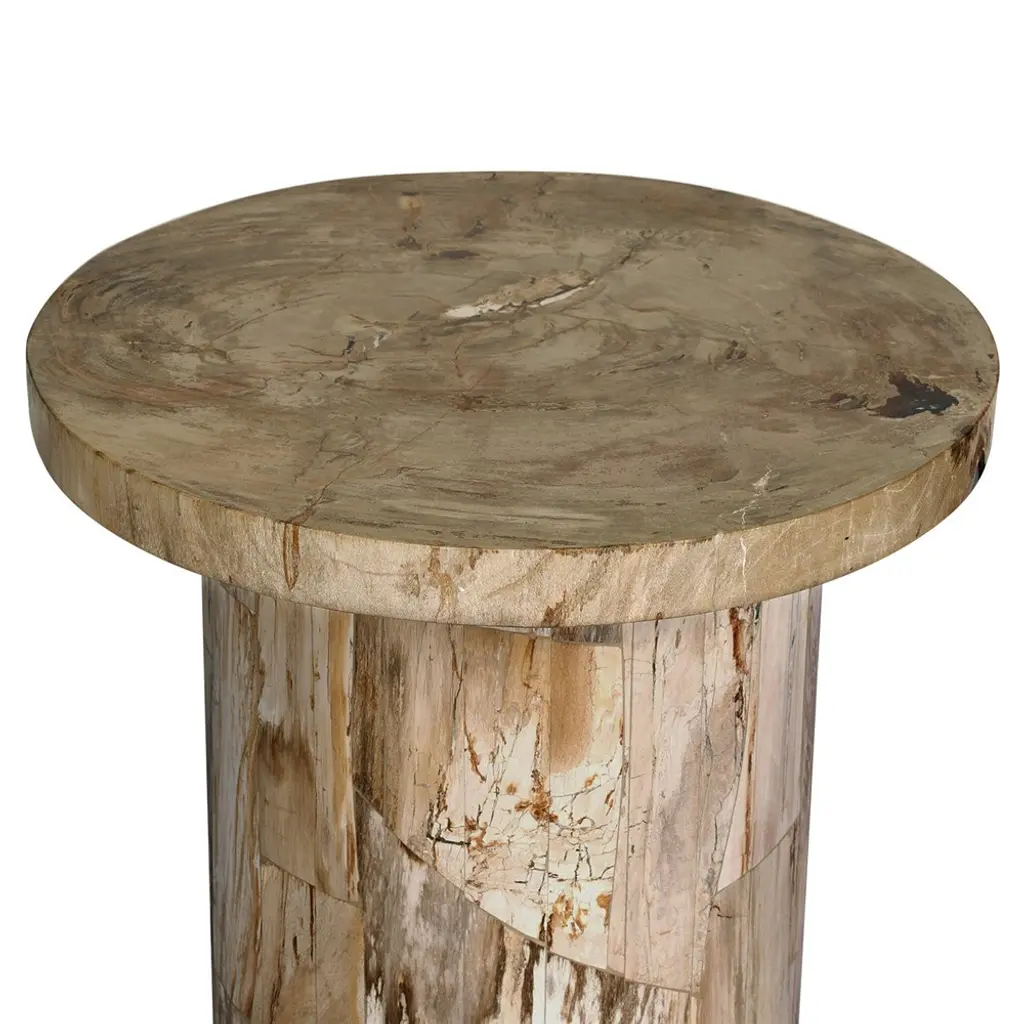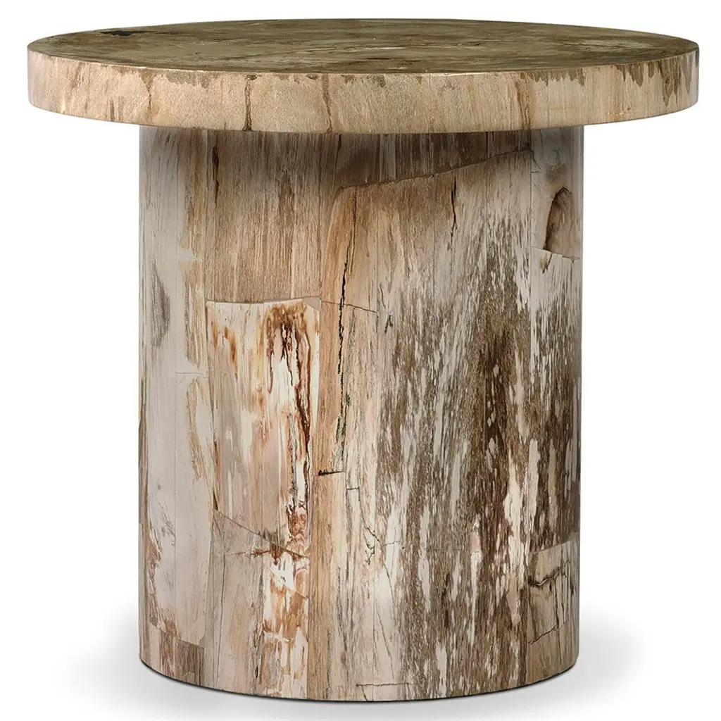 Cora Rustic Lodge Light Petrified Wood Round Pedestal End Table