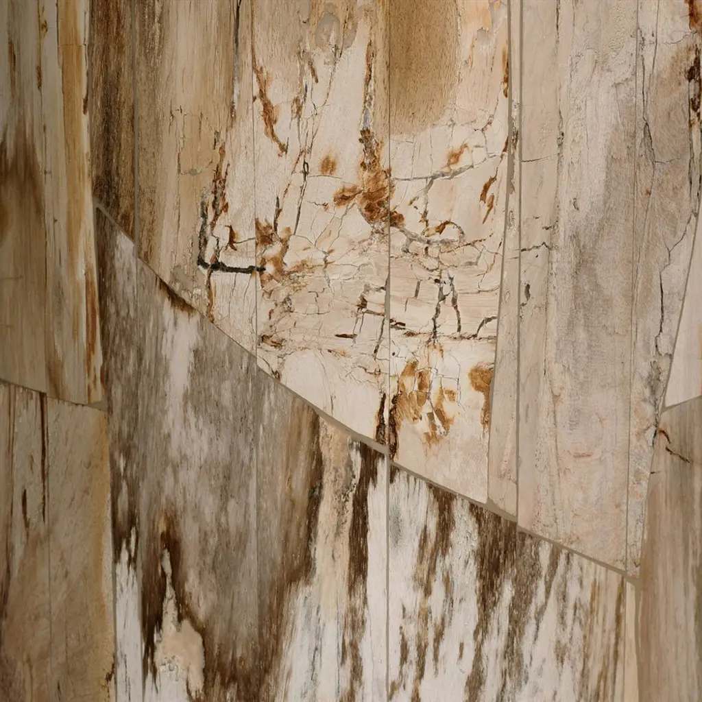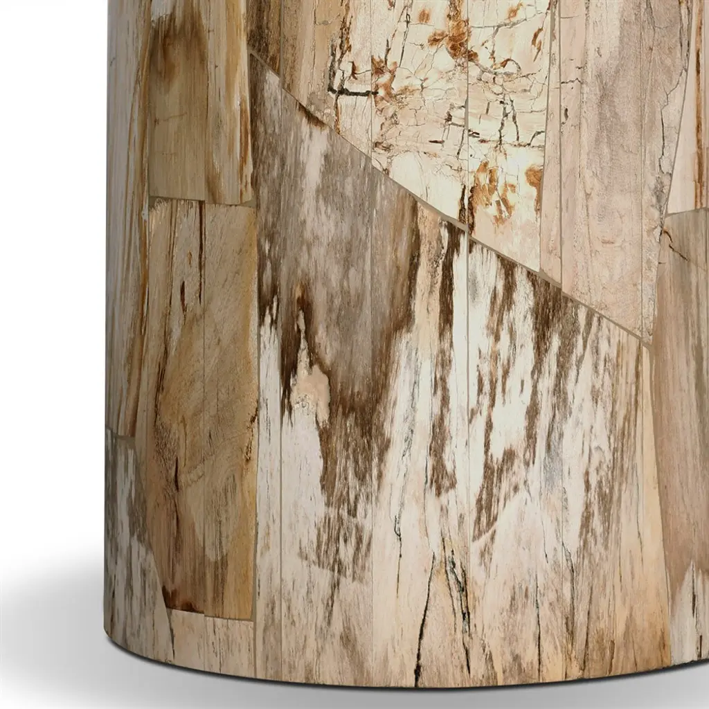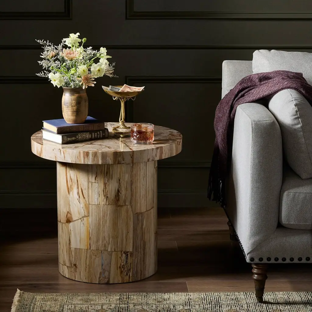 Cora Rustic Lodge Light Petrified Wood Round Pedestal End Table