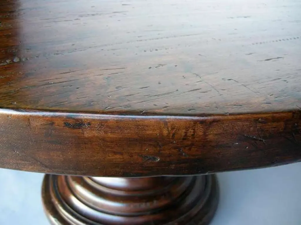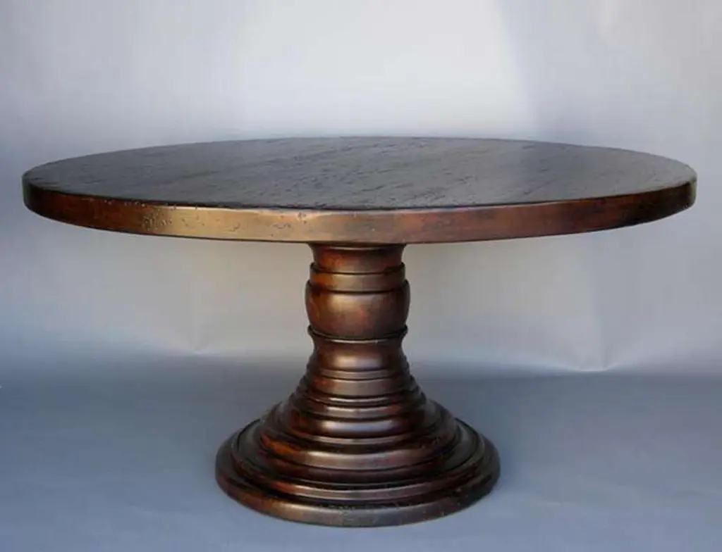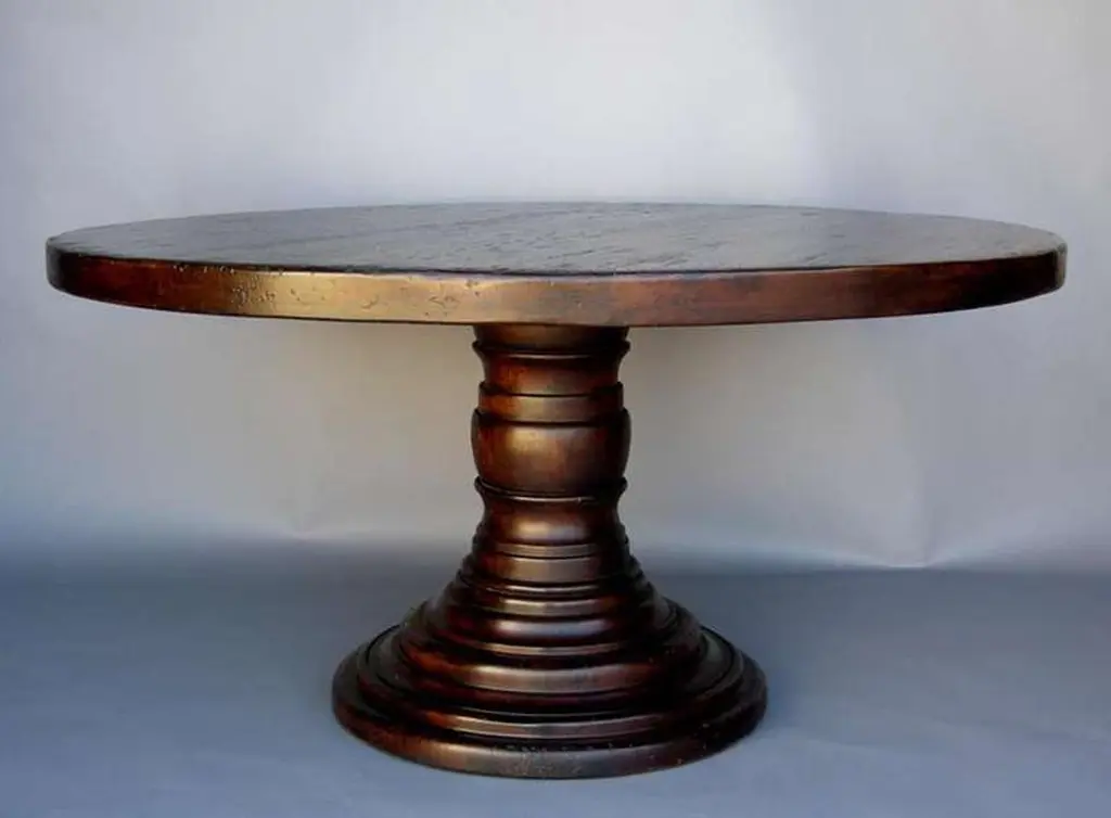 Custom Mahogany Wood Round Beehive Pedestal Table By Dos Gallos Studio