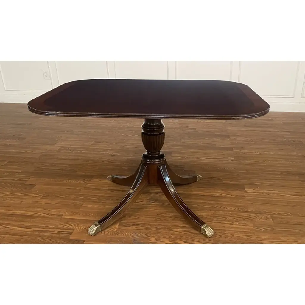 Custom pedestal table in dark mahogany with beehive base. Measure: Top is 2 1/2" thick. Great dining or centre table. Can be made in any size and finish in a variety of woods. Made in Los Angeles by Dos Gallos Studio.CUSTOM PRICES ARE SUBJECT TO CHANGE DUE TO FLUCTUATING MATERIAL AND LABOR PRICES. PLEASE INQUIRE BEFORE PLACING AN ORDER. CUSTOM ORDERS ARE NON RETURNABLE. FINAL SALE