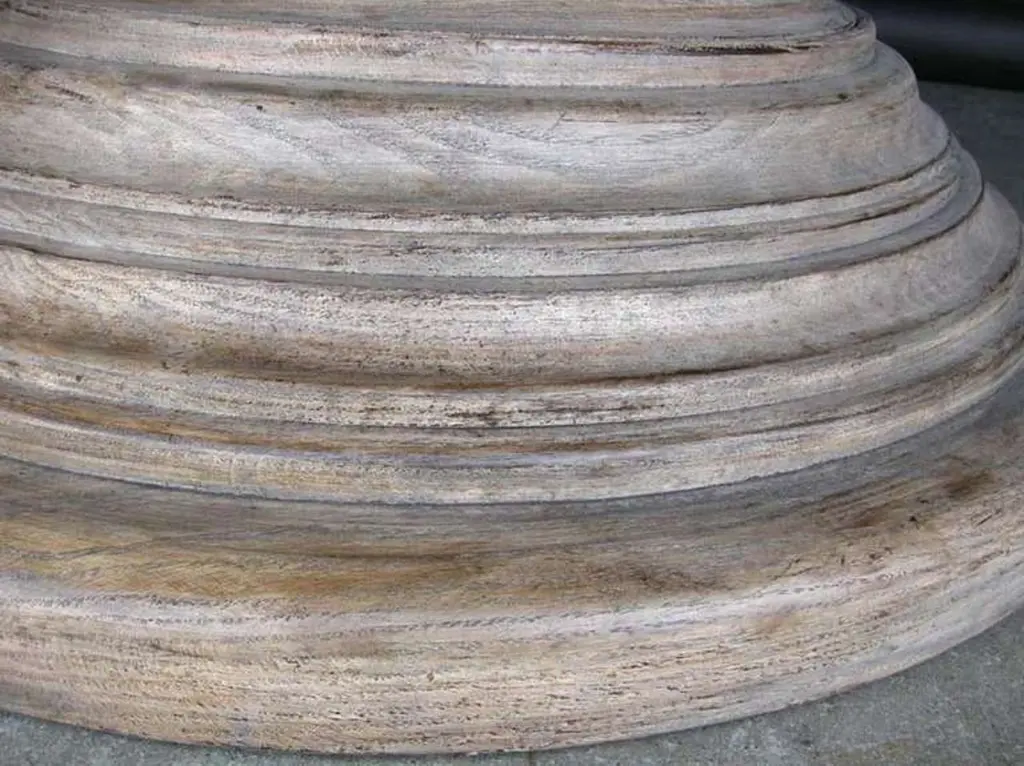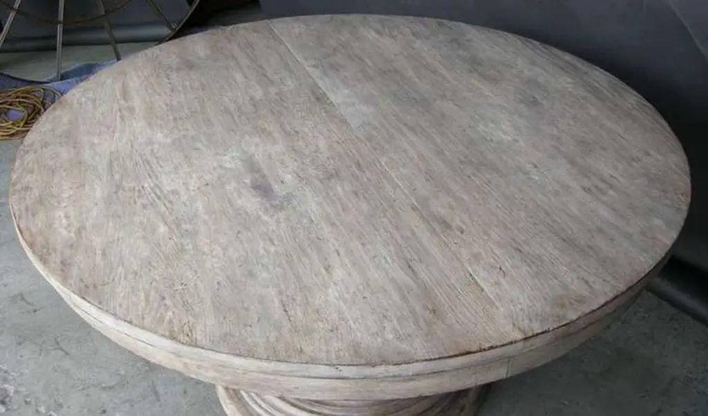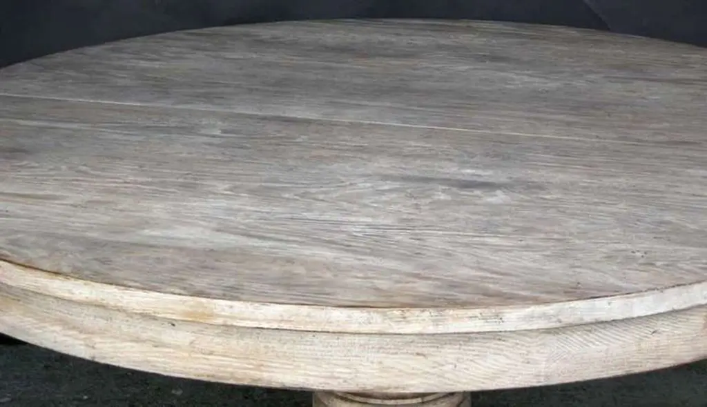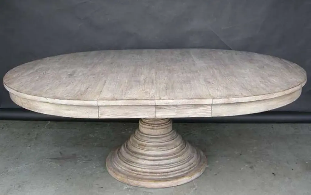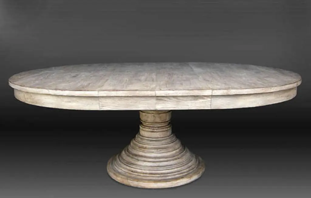 Oak beehive pedestal table with two 12" leaves. Driftwood patina. 60" diameter without leaves and opens up to 84" with leaves. Can be made in any size and finish. Made in Los Angeles by Dos Gallos Studio.CUSTOM PRICES ARE SUBJECT TO CHANGE DUE TO FLUCTUATING MATERIAL AND LABOR PRICES. PLEASE INQUIRE BEFORE PLACING AN ORDER. CUSTOM ORDERS ARE NON RETURNABLE. FINAL SALE