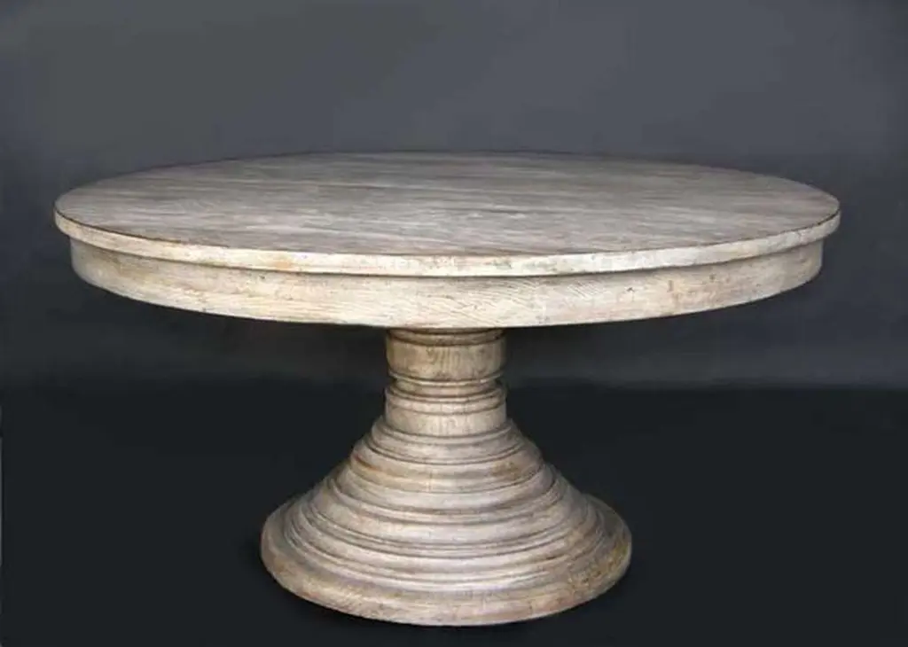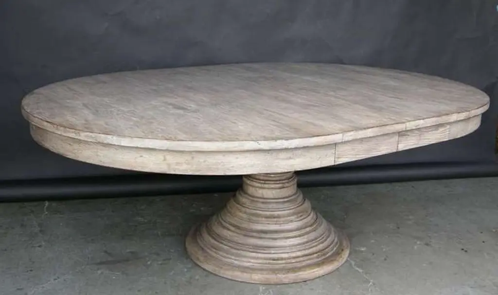 Custom Oak Wood Beehive Pedestal Table With Leaves By Dos Gallos Studio