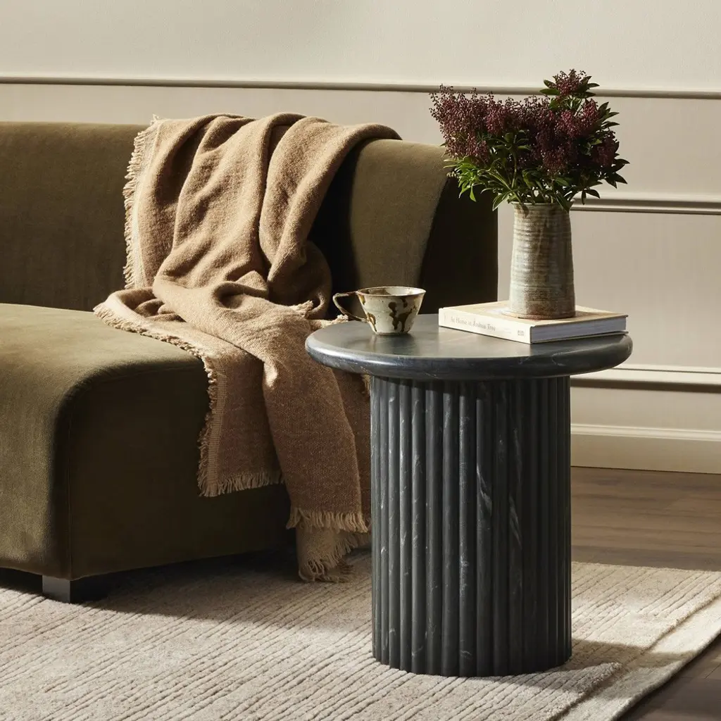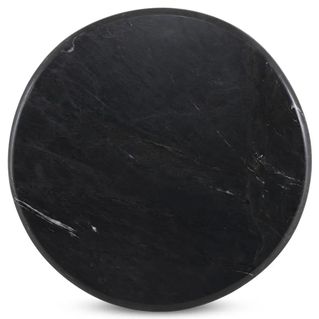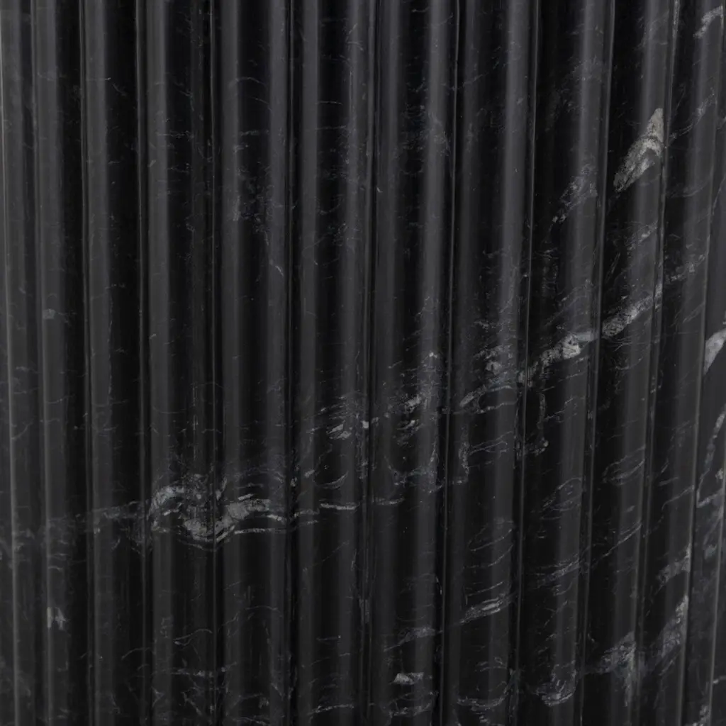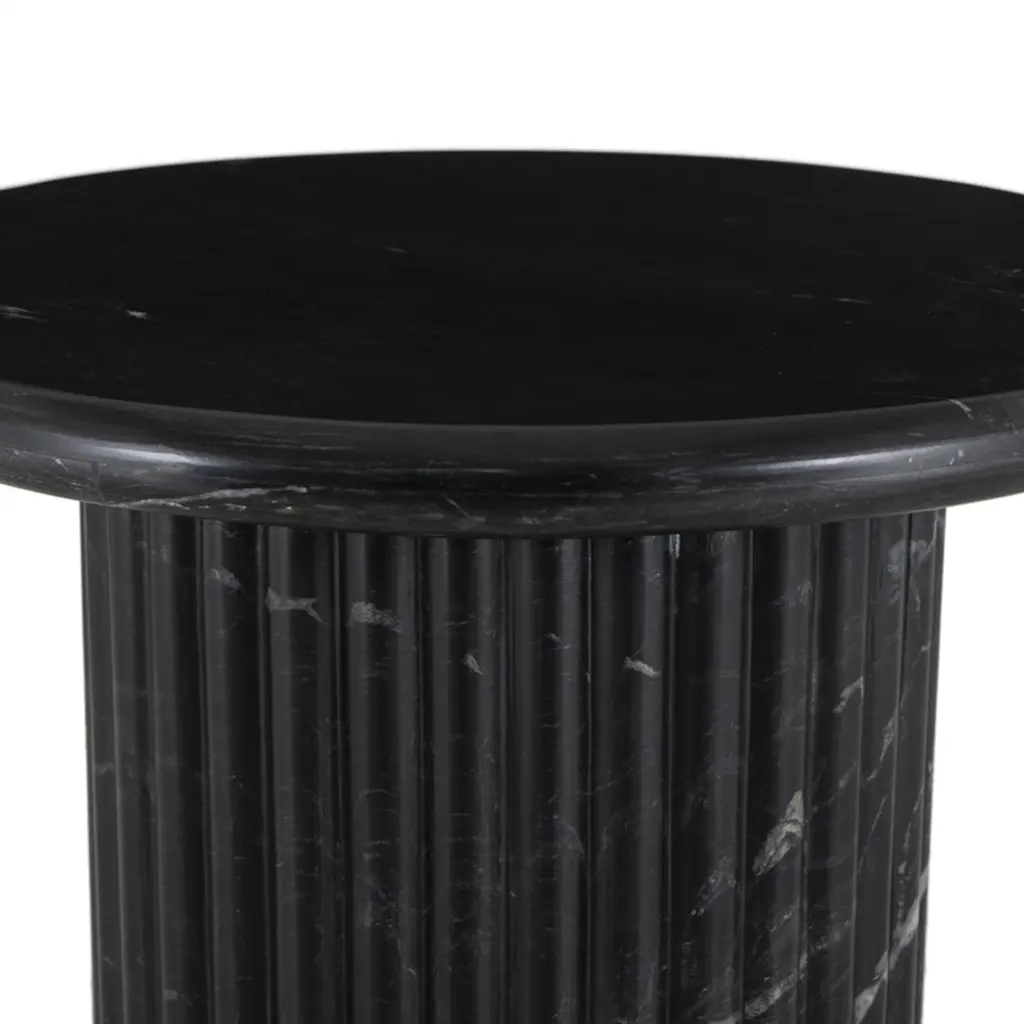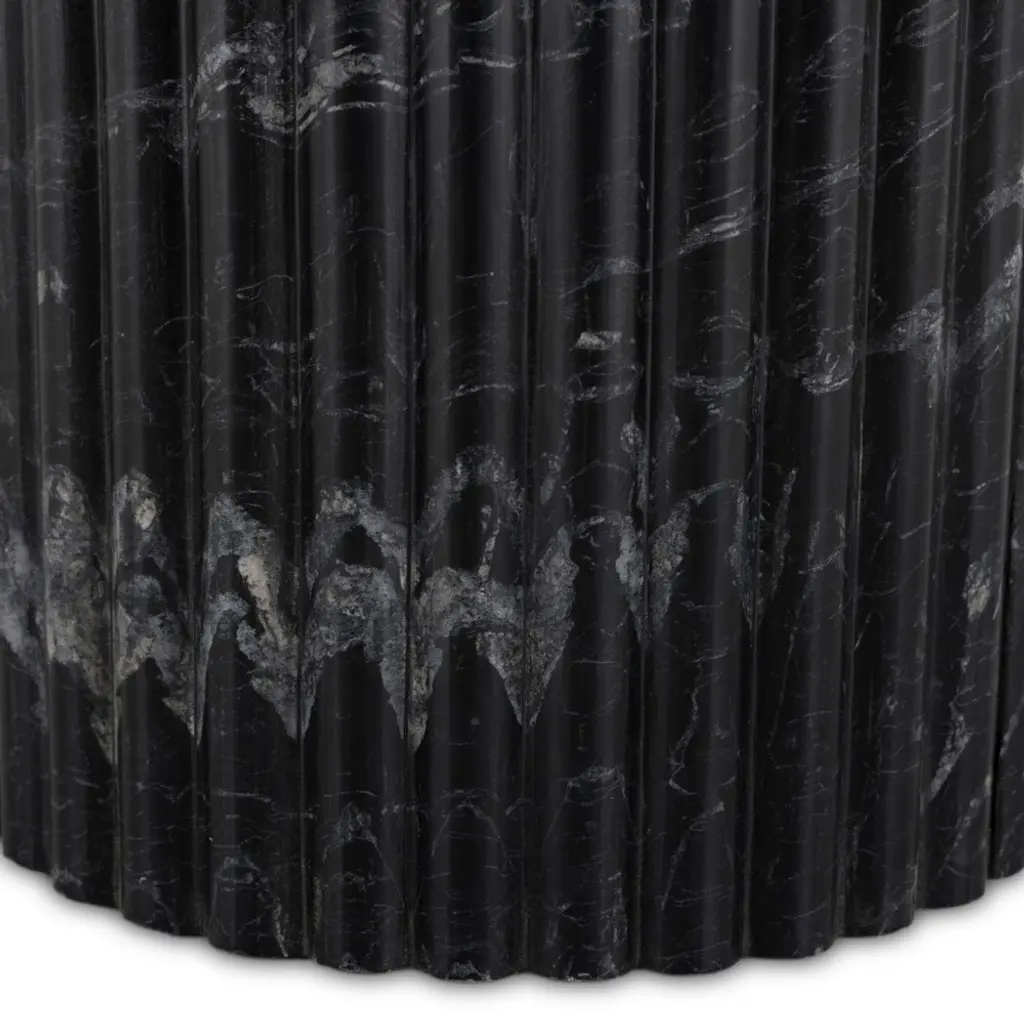 Denzel Modern Classic Black Marble Round Pedestal Scalloped End Table