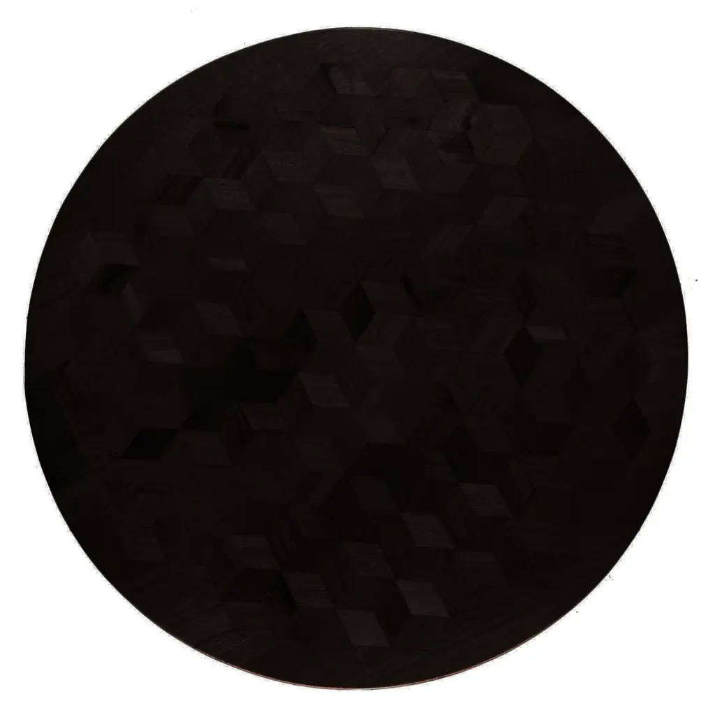 Doris Round Marquetry Table In Ebonized Reclaimed Oak With Cast Bronze Pedestal