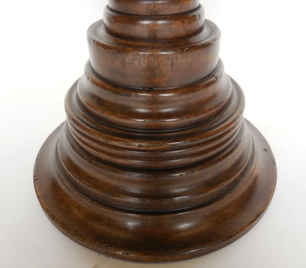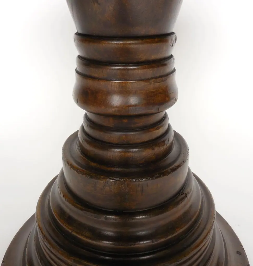 Dos Gallos Custom Walnut Wood Round Beehive Pedestal End Table